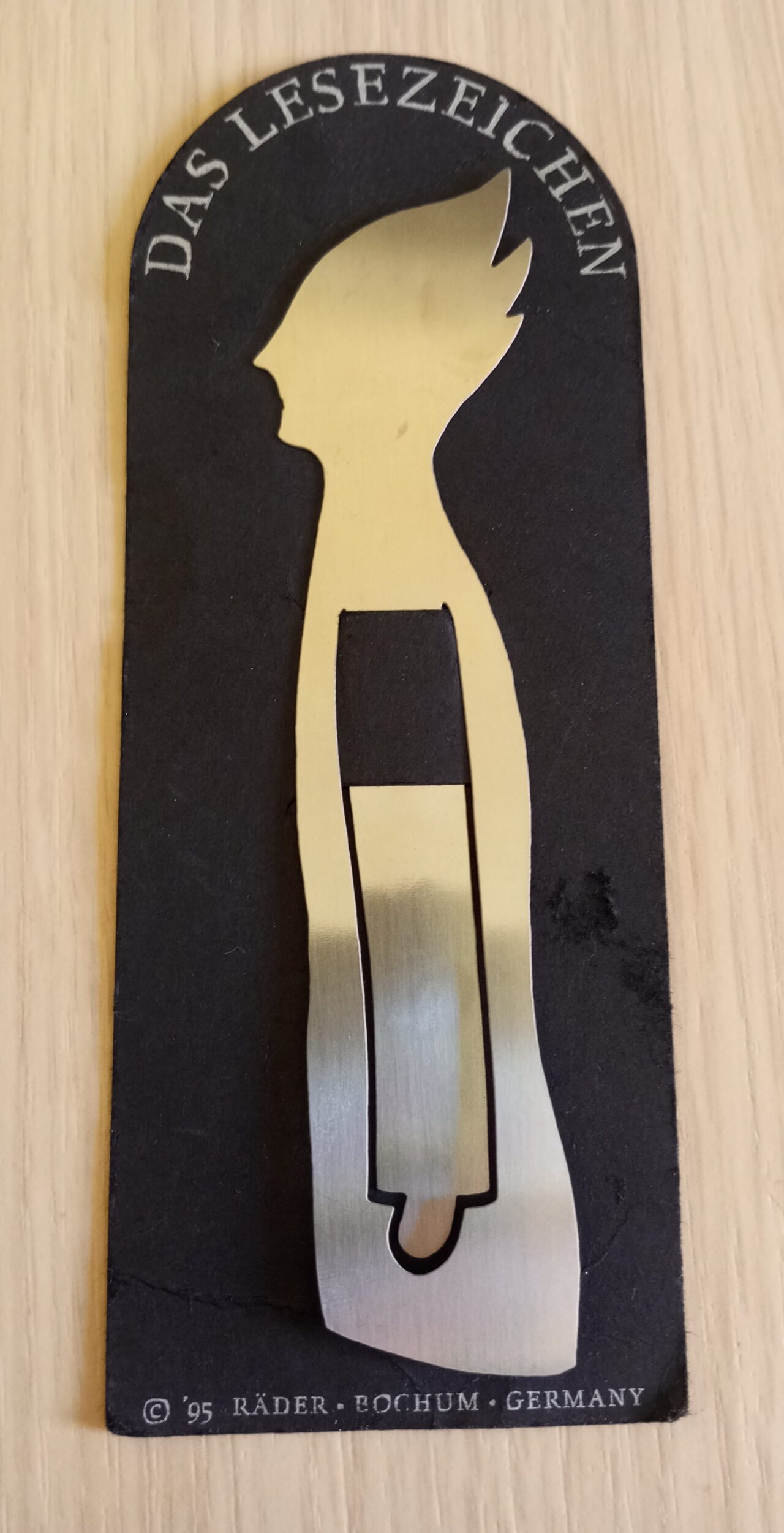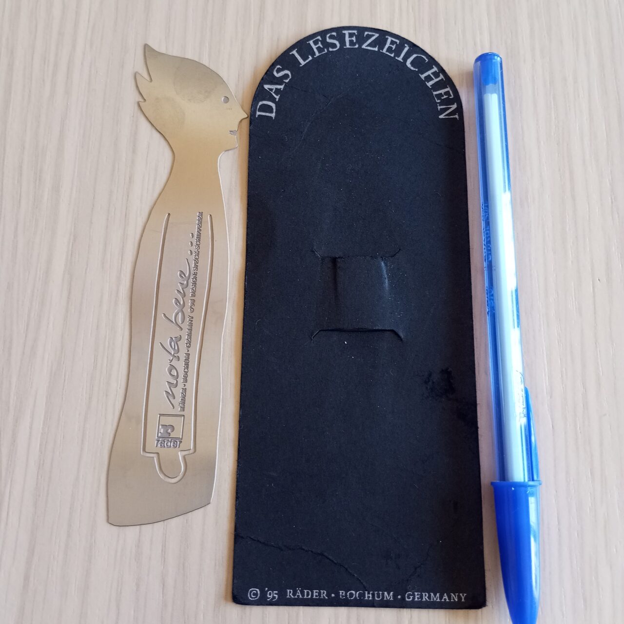 Segnalibro in metallo,da collezione anno 1995Germaniapenna per le proporzioni.È nuovo il cartoncino ha qualche segno .