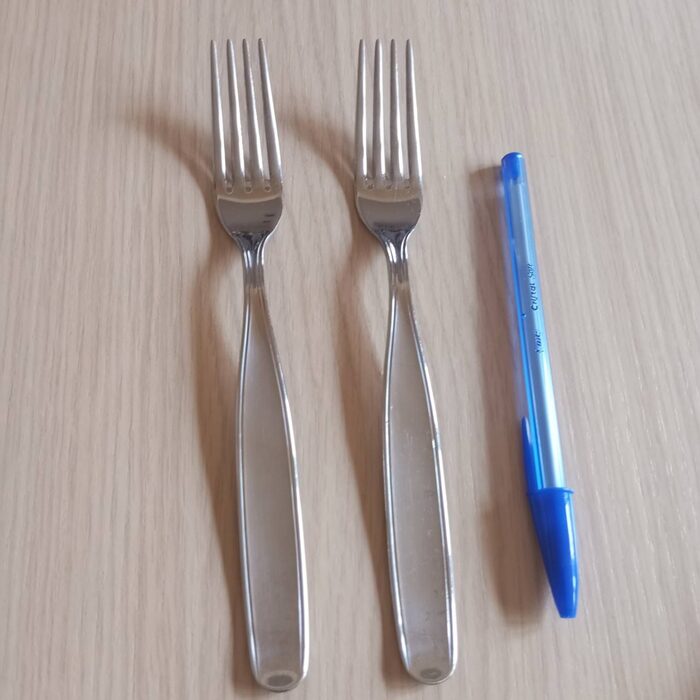Due forchette come in foto.Credo di averle prese con i punti e do non averle mai usatePenna per le proporzioni .