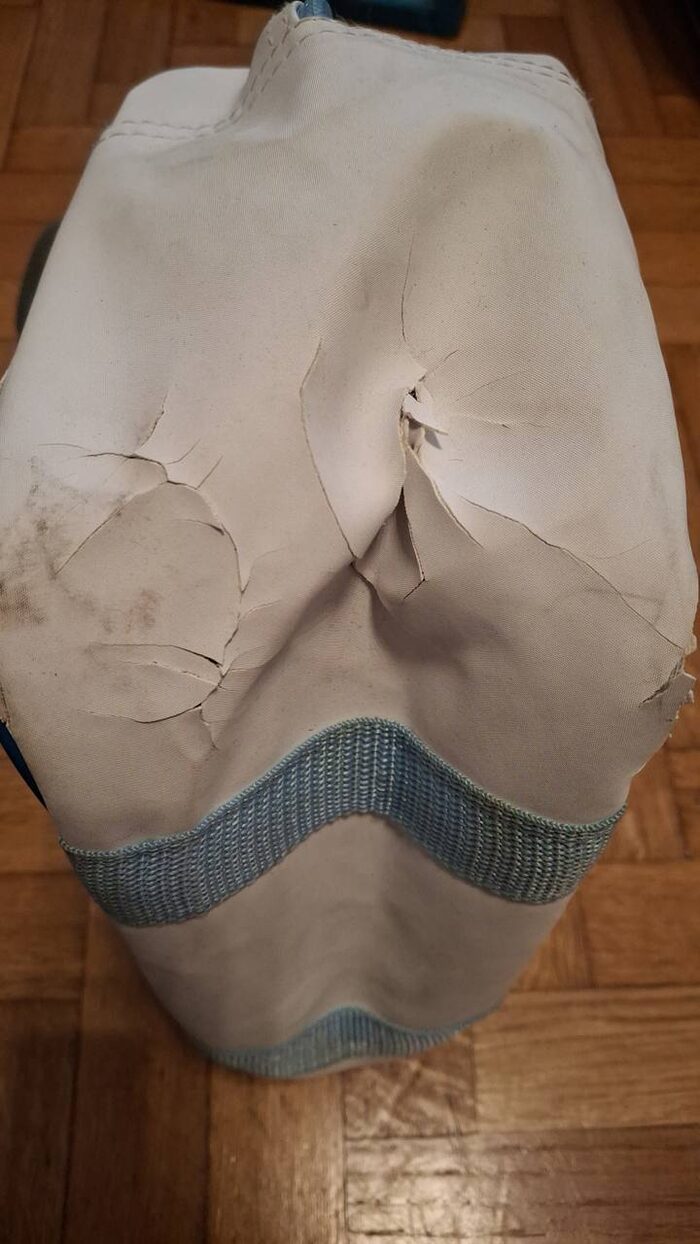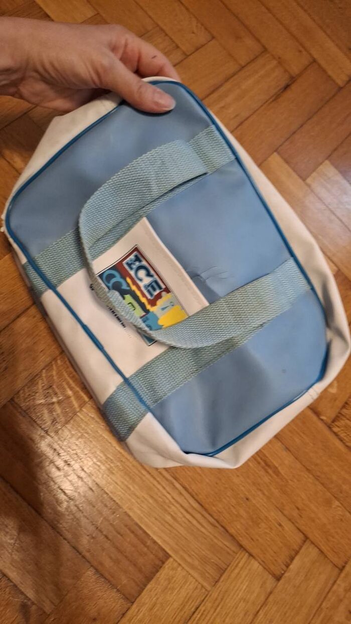 Borsa termica. Di fuori ha dei punti in cui si è sbucciata e invece dentro è a posto e pulito .