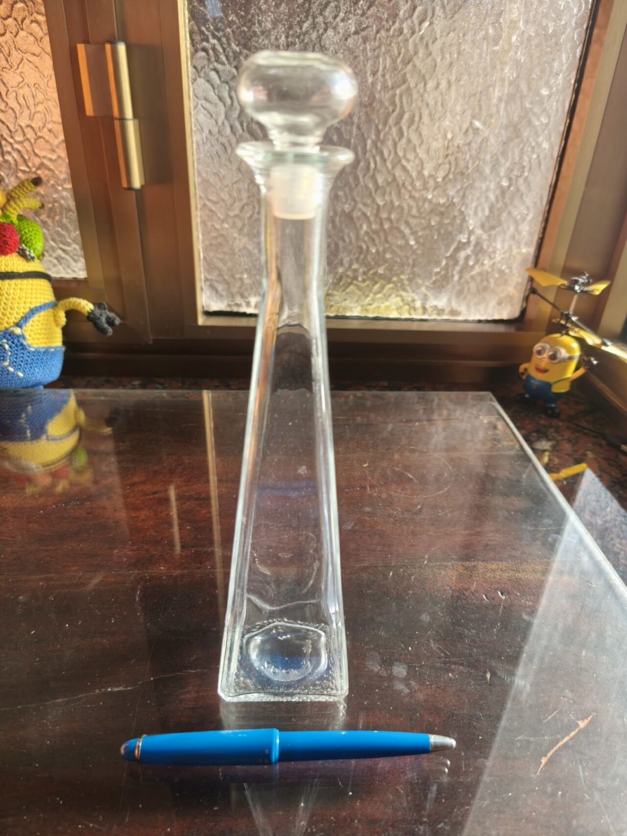 In vetro, altezza cm 24,5, il tappo si può aprire. .