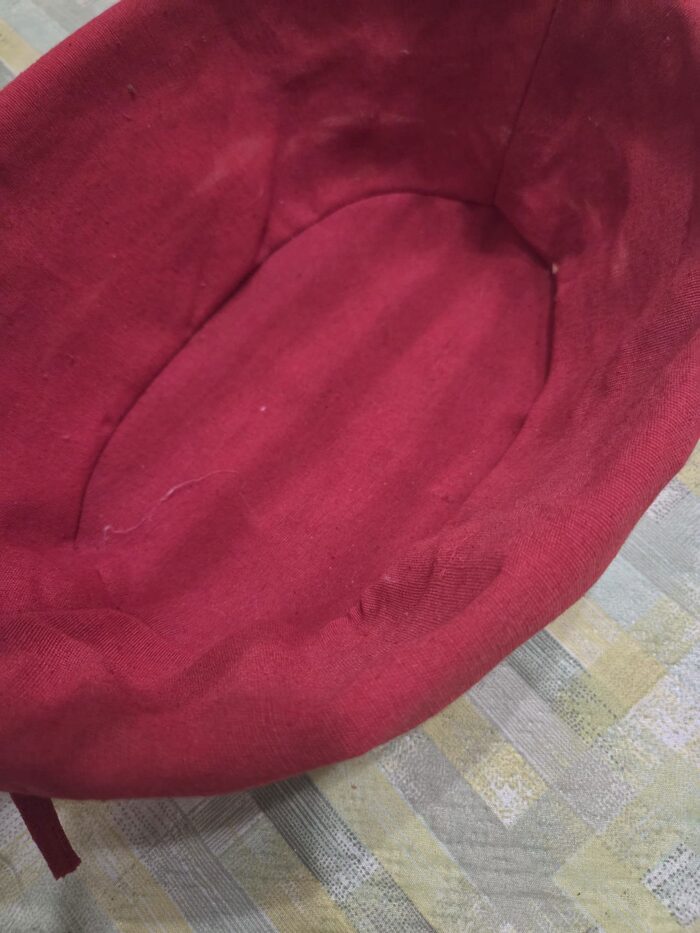 Cestino bianco tipo vimini con interno rosso, tenuto solo esposto .