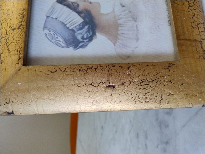 Cornice in legno, misure complessive 22x26. Misura della foto 12x16.5. Da ritoccare (vedi foto).Si può anche appendere, sia in verticale che in orizzontale. .