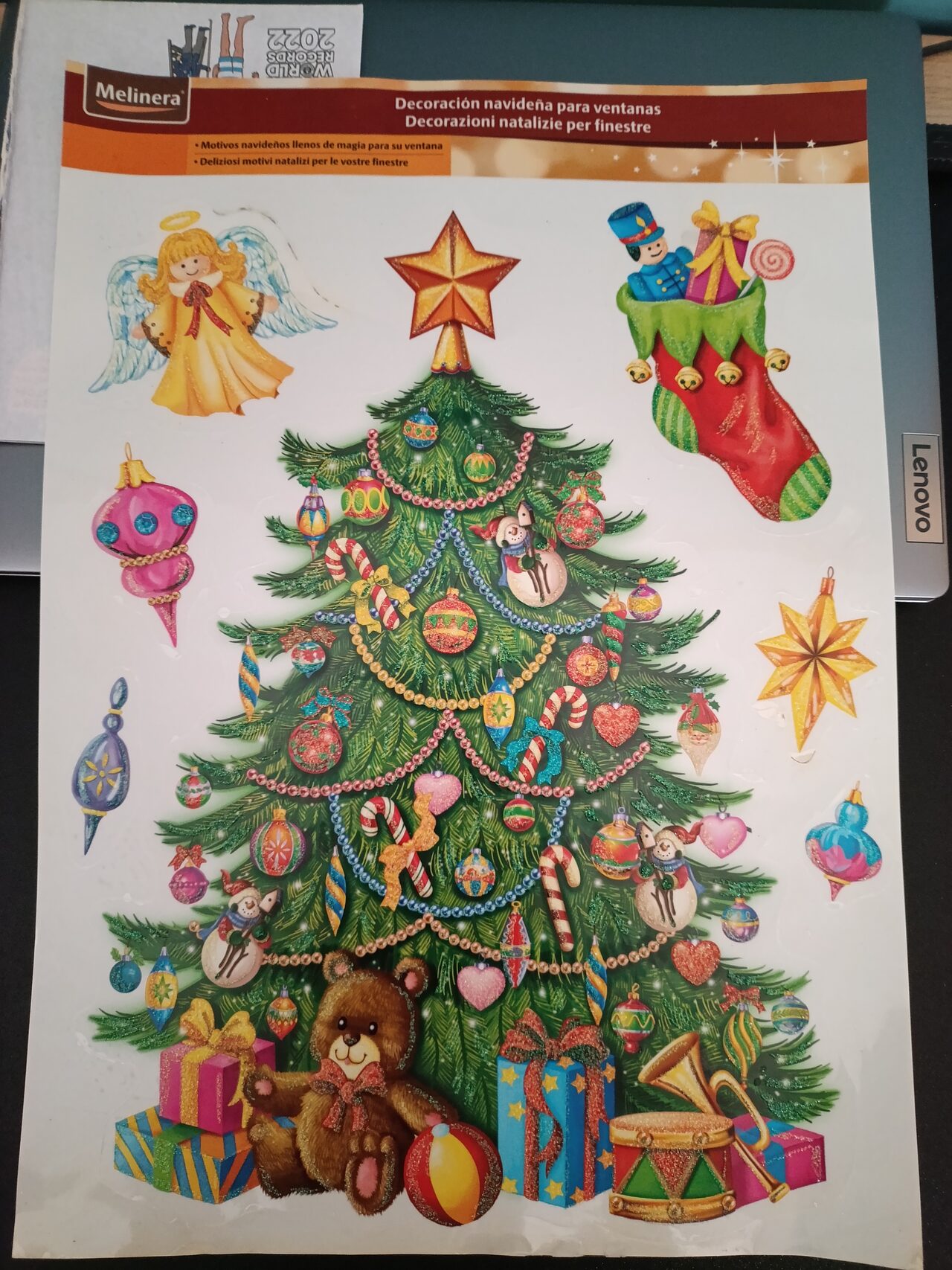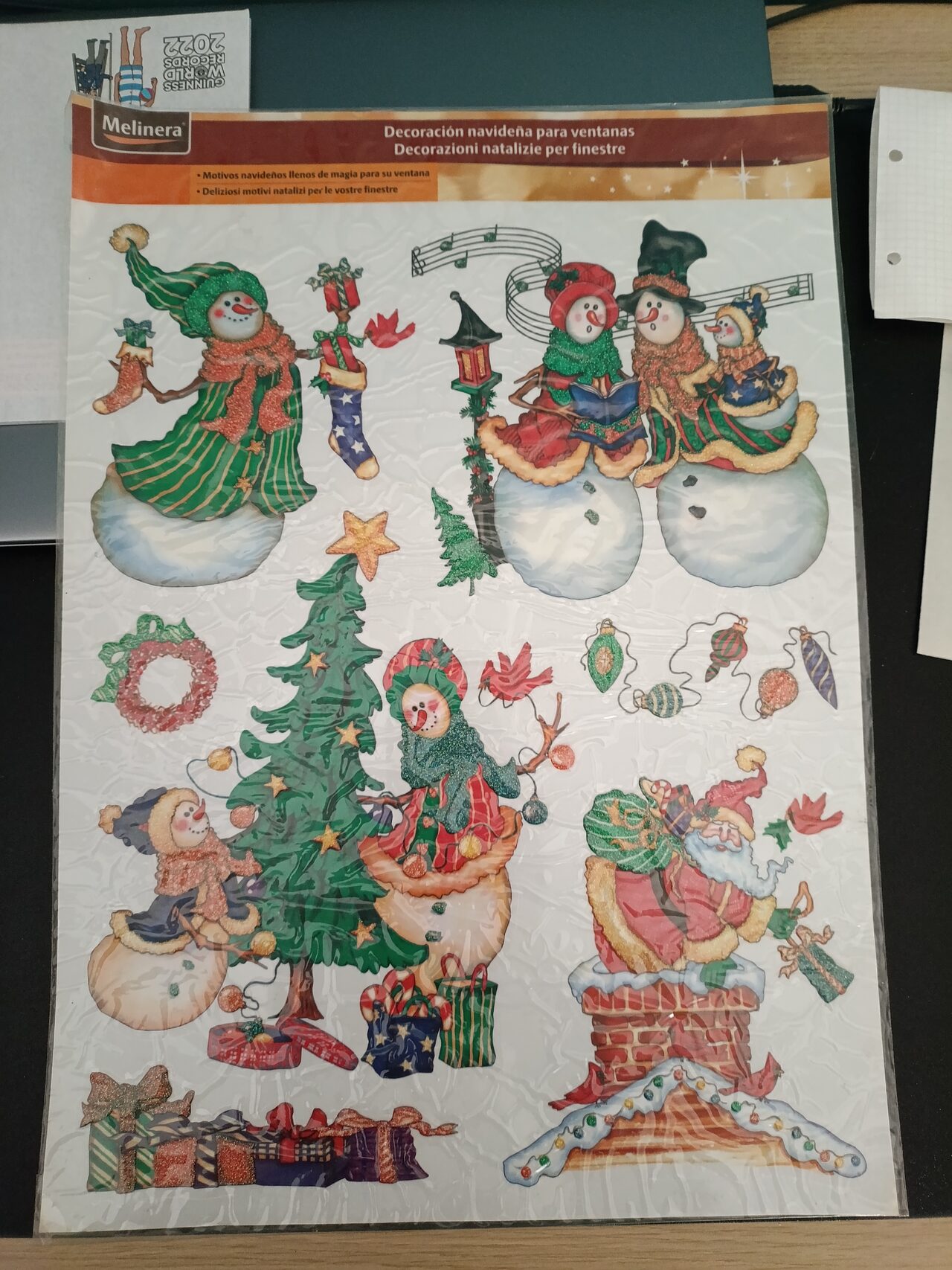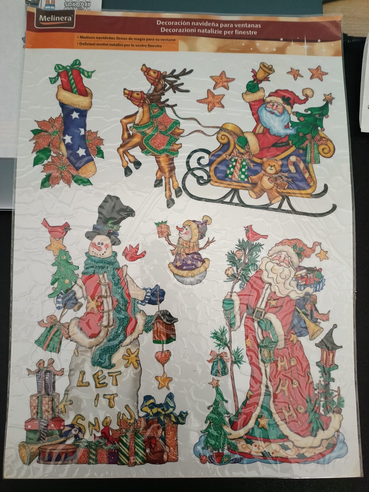 Decorazioni natalizie adesive da attaccare alle finestre. Il foglio misura 42x30 cm. Due nuove e sigillate, la terza pure nuova ma ho tolto la plastica esterna che era sciupata .