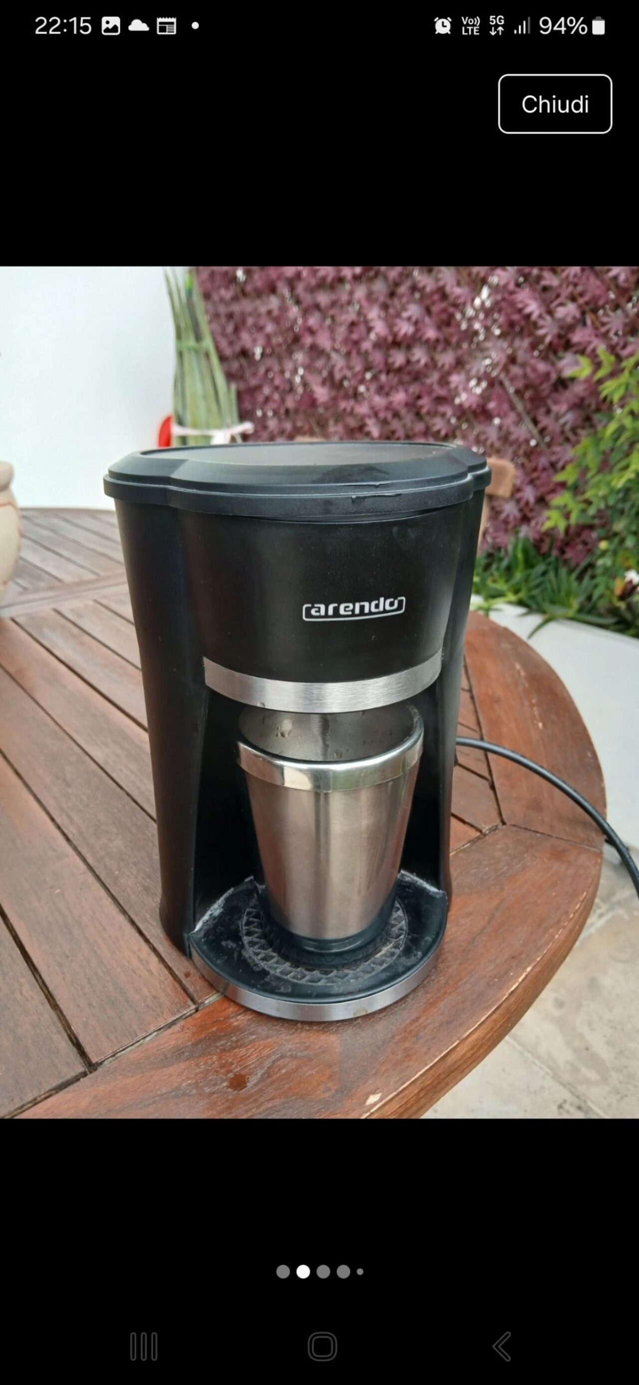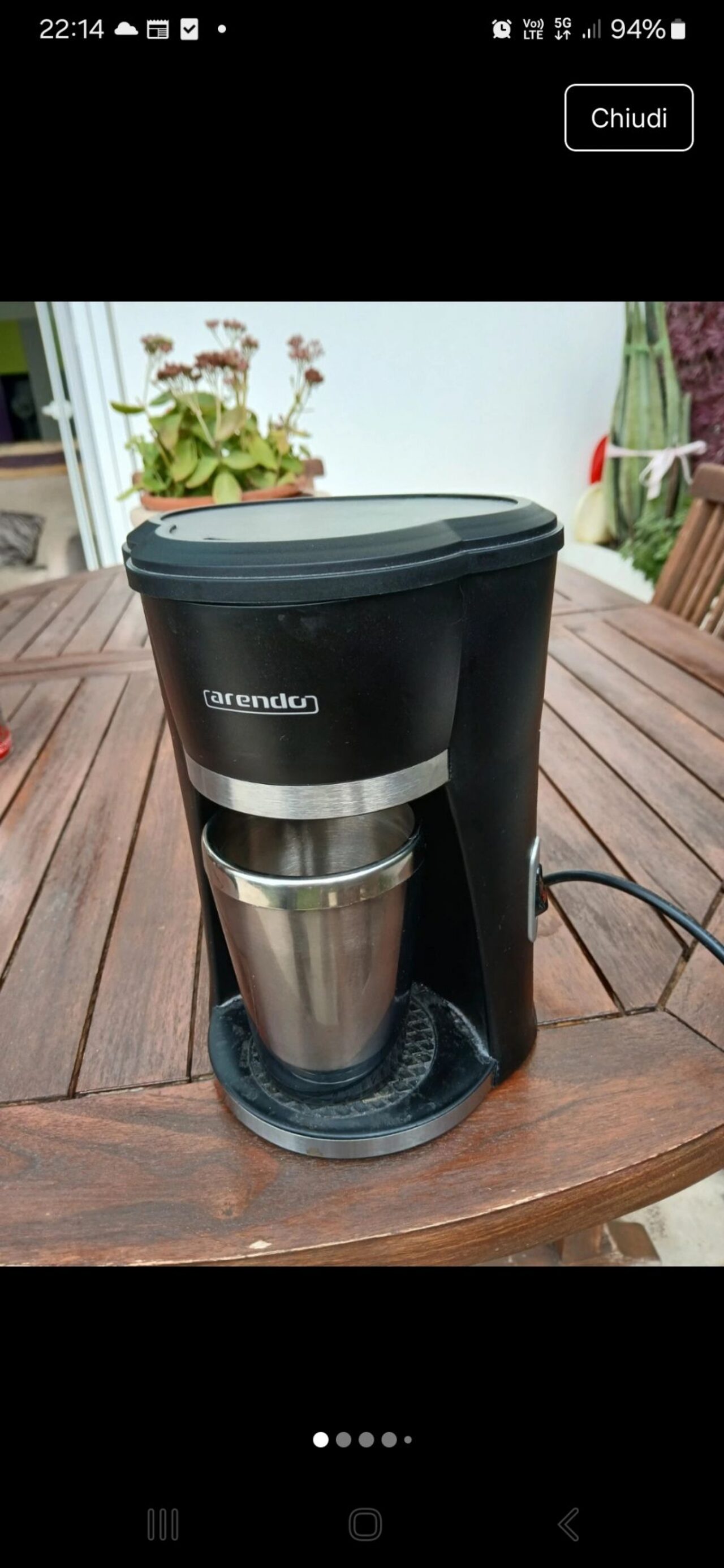 Macchinetta per caffè lungo americano. Va messa l''acqua e la polvere del caffè. Poi va accesa e dovete attendere l''uscita del caffè quando l''acqua arriva a temperatura. C''è anche la tazza termica. Funziona perché l''ho provata. Spedisco in collettiva a gennaio .