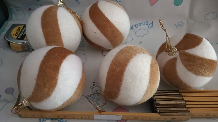 palle grandi natalizie in materiale tipo polistirolo rivestito ma nascono così e si possono rivestire .