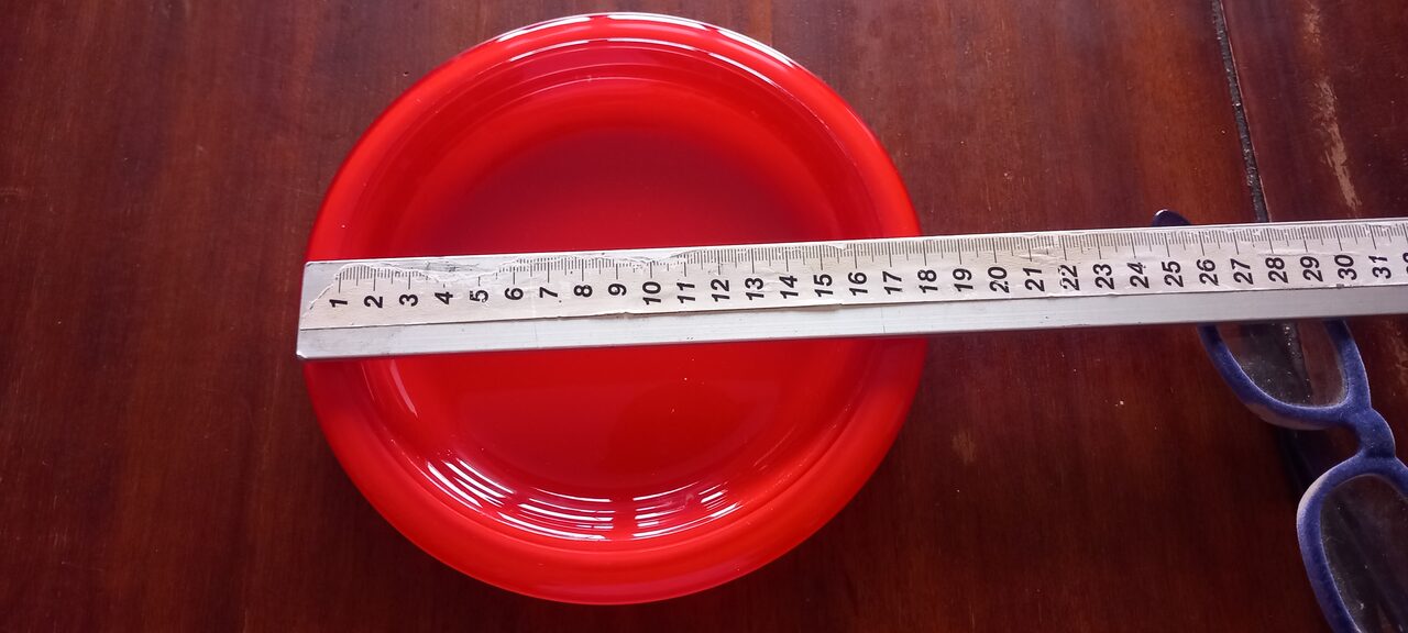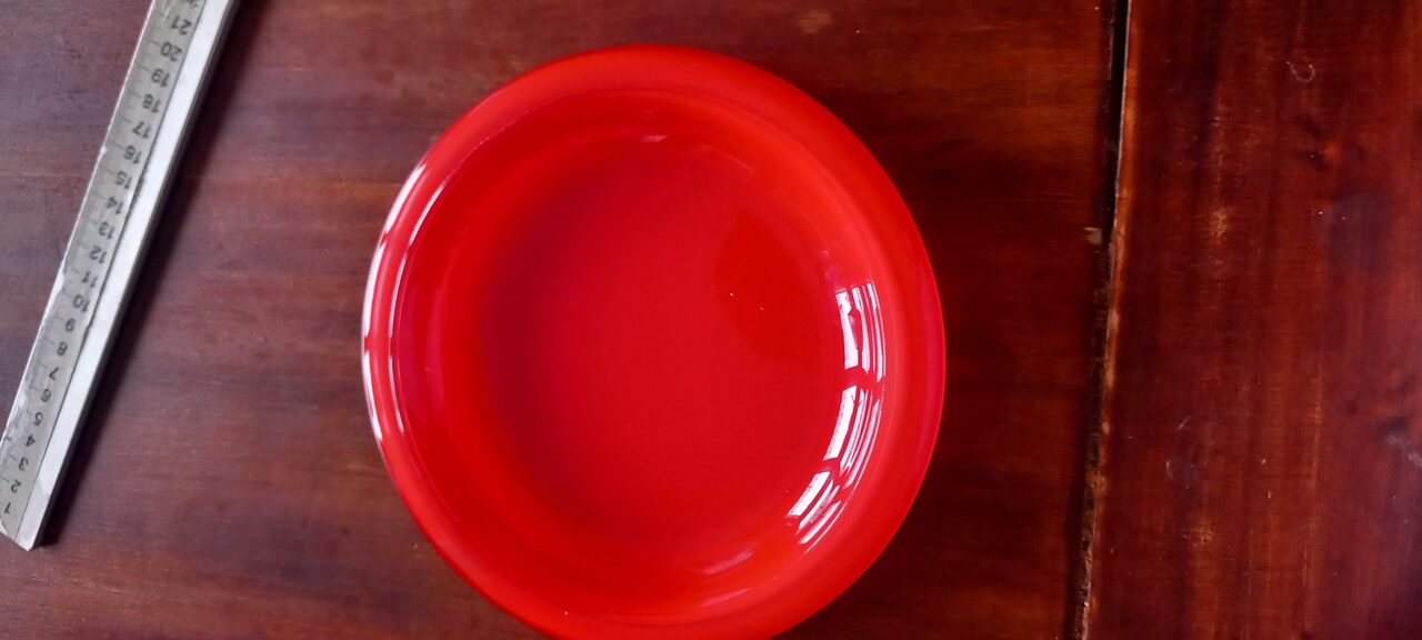 Piatto da frutta di vetro trasparente sopra e smaltato sotto