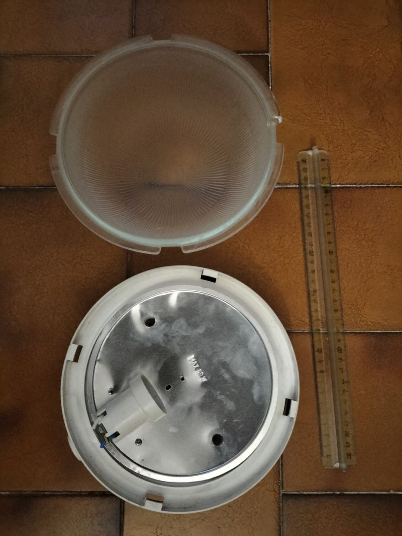 Vetro. Base plastica e metallo. Per lampadina attacco grande