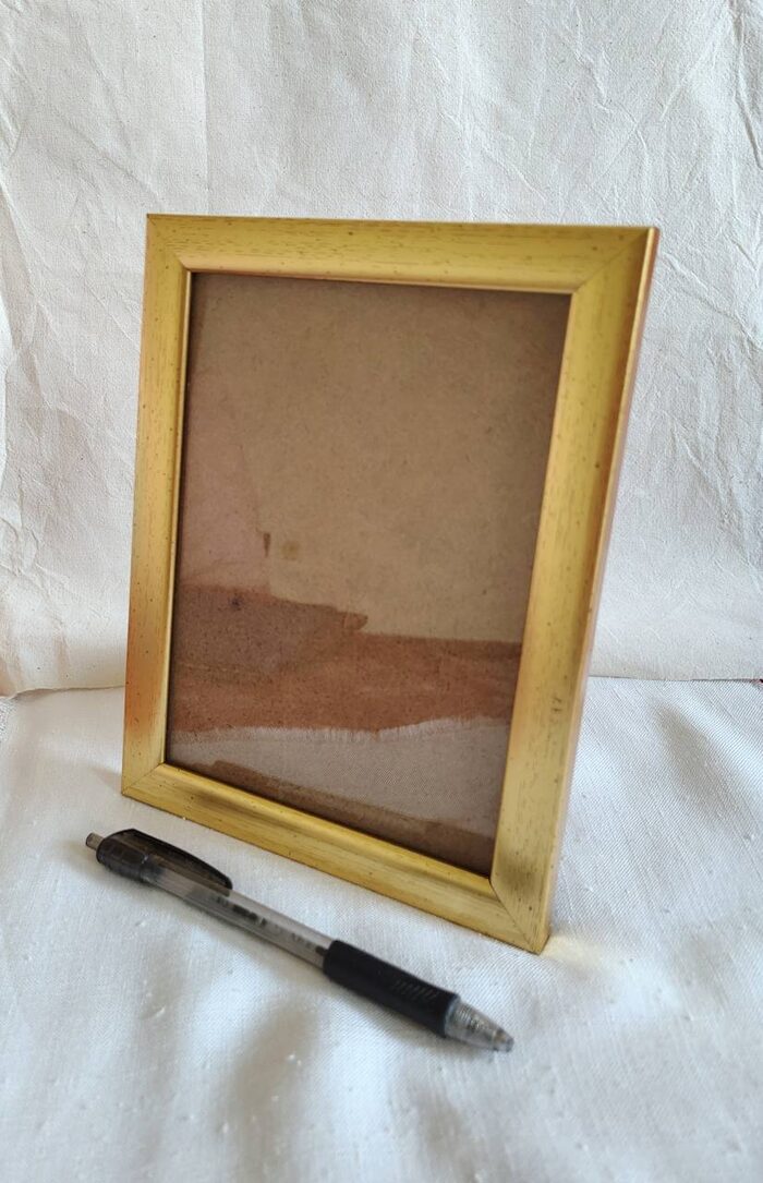 Portafoto da tavolo, dorato, effetto legno. Possibilità sia verticale che orizzontale.