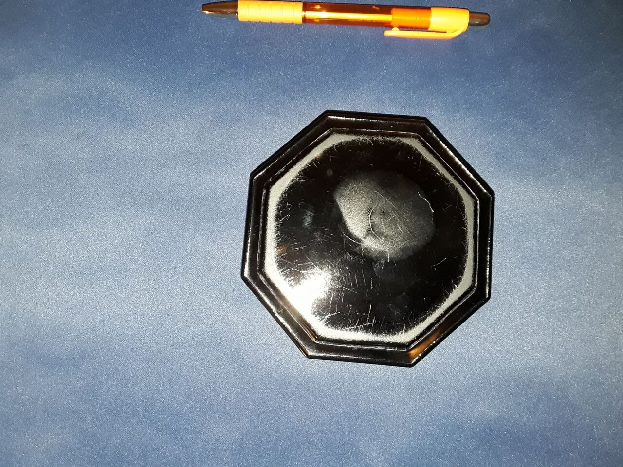 usato tanto ma in perfette condizioni, no ammaccature no scheggiature, non è infrangibile sembra di qualche tipo di vetro ma non ne sono sicura .