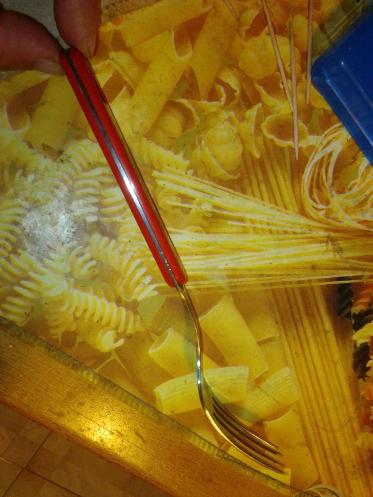 Ditta Abert o altri, di plastica rossa con anima in metallo ,, 1 coltello ed un cucchiaino o più .