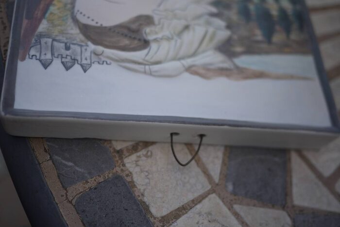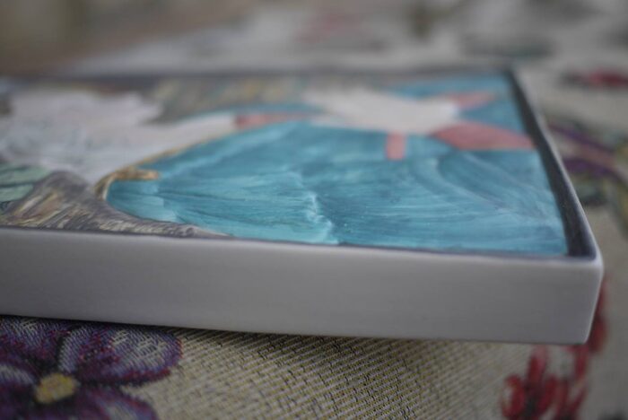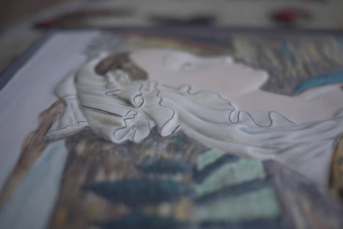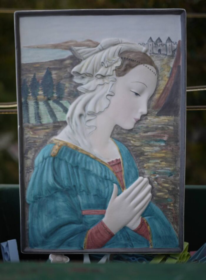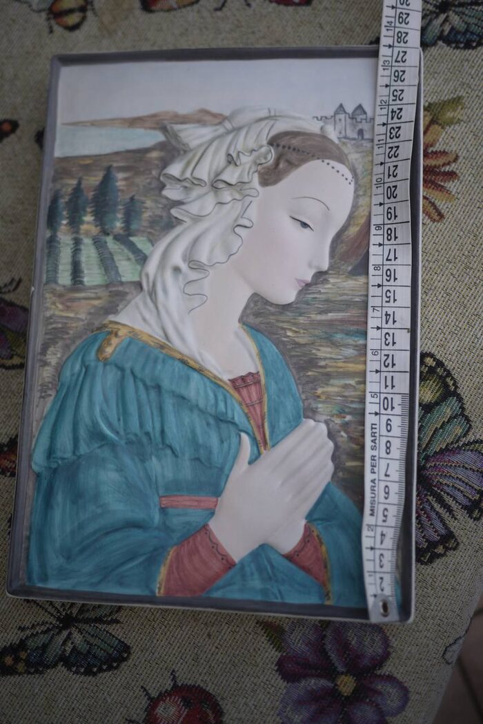 Quadro ceramica, raffigurante madonna in preghiera (basso rilievo)