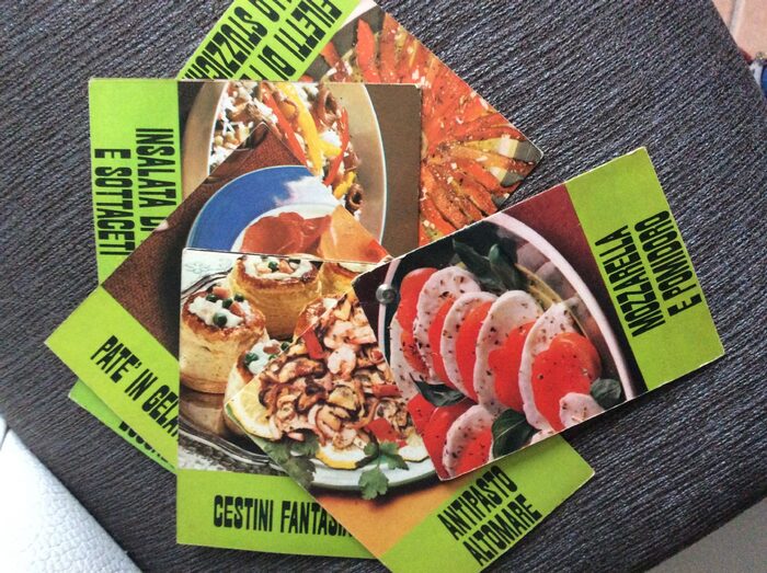 Ricettario fatto da schedine in cartone a ventaglio, molto vintage .