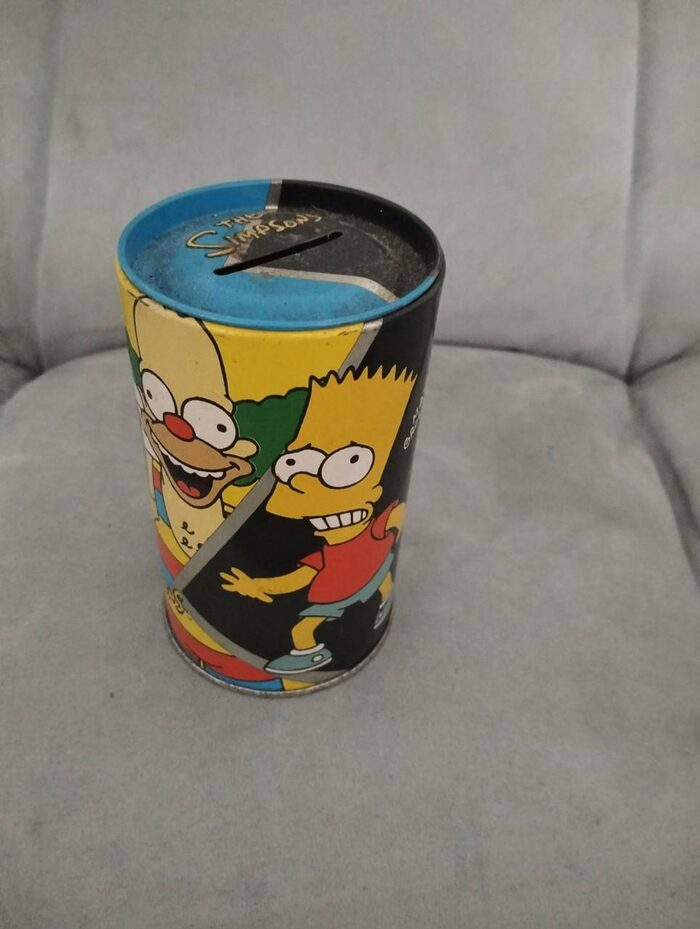 salvadanaio di latta dei simpson, eventualmente utilizzabile anche per minuterie .