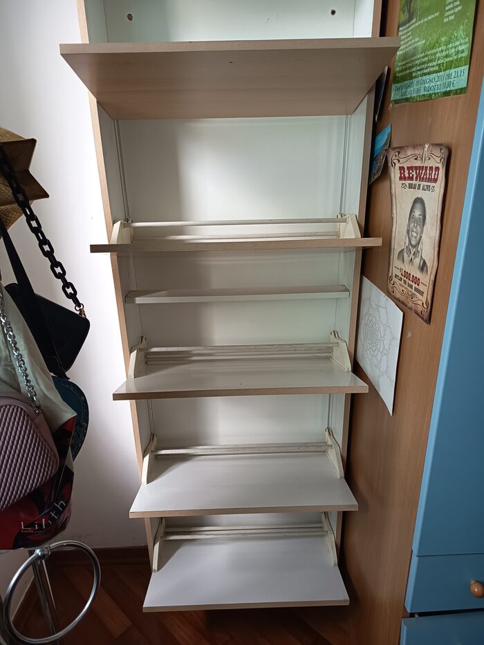 Scarpiera usata ma in buono stato. Unica pecca: ha bisogno di fissaggio a parete .