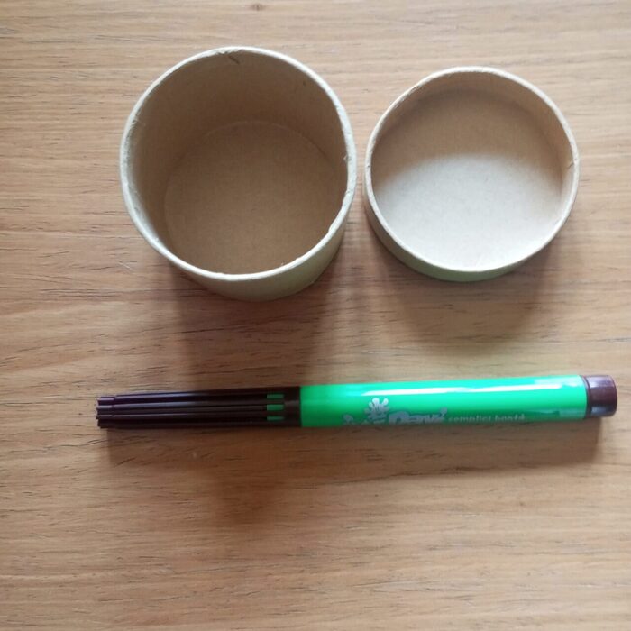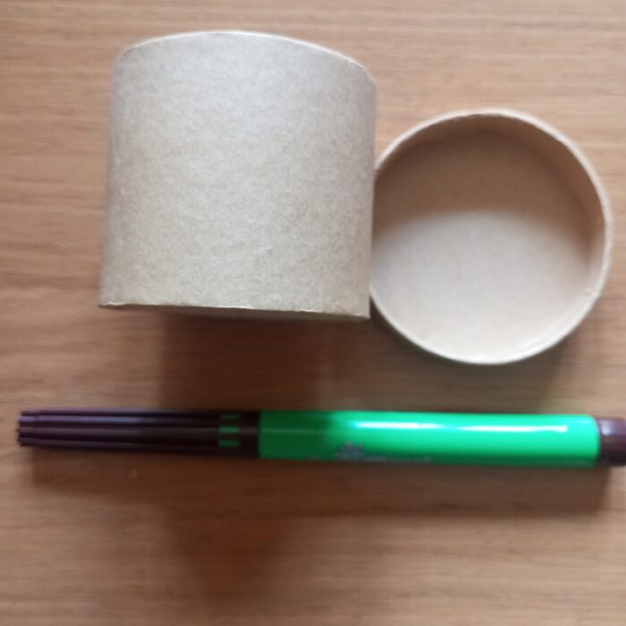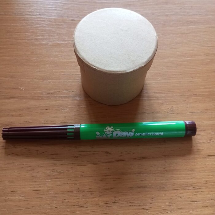 Scatolina in cartone robusto,forma cilindrica.Pennarello per le proporzioni Da decorare o da usare così . .