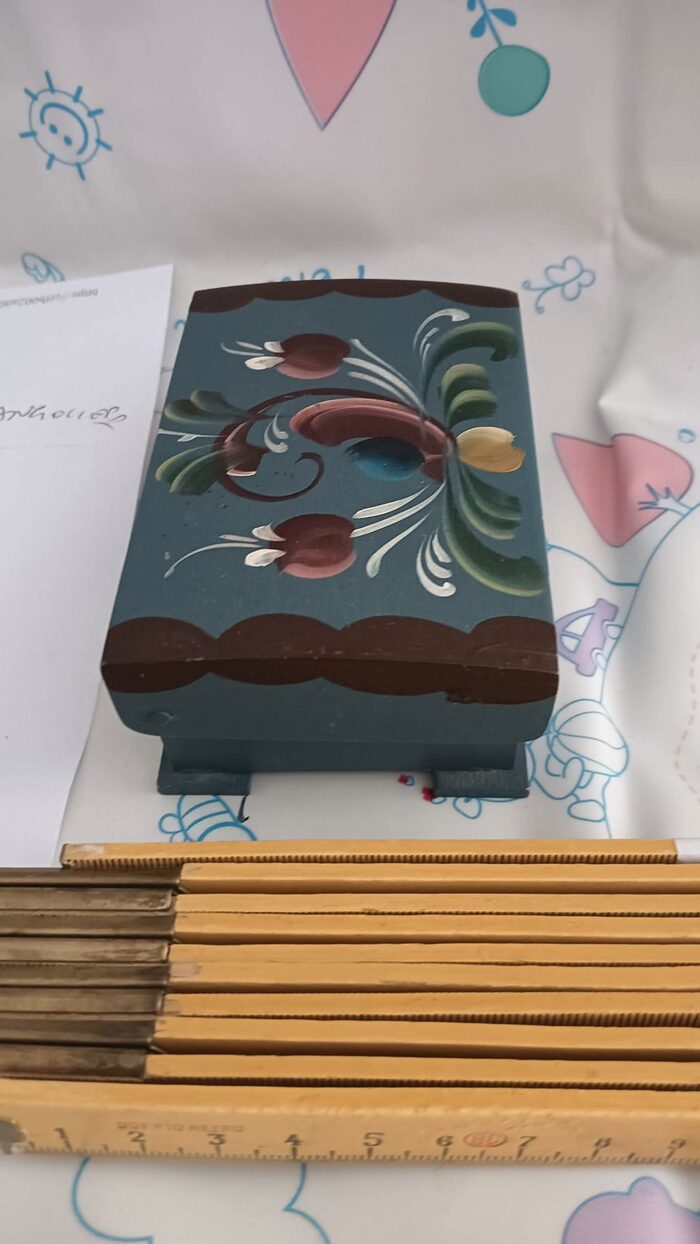 scatolina deliziosa in legno decorata a mano .