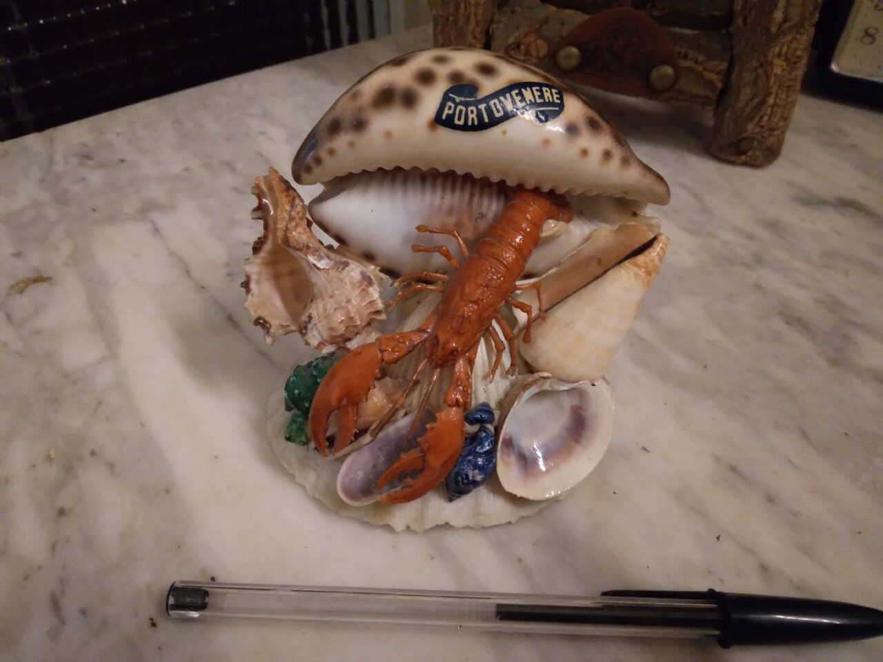 Soprammobile conchiglie Portovenere. La penna è per le dimensioni .