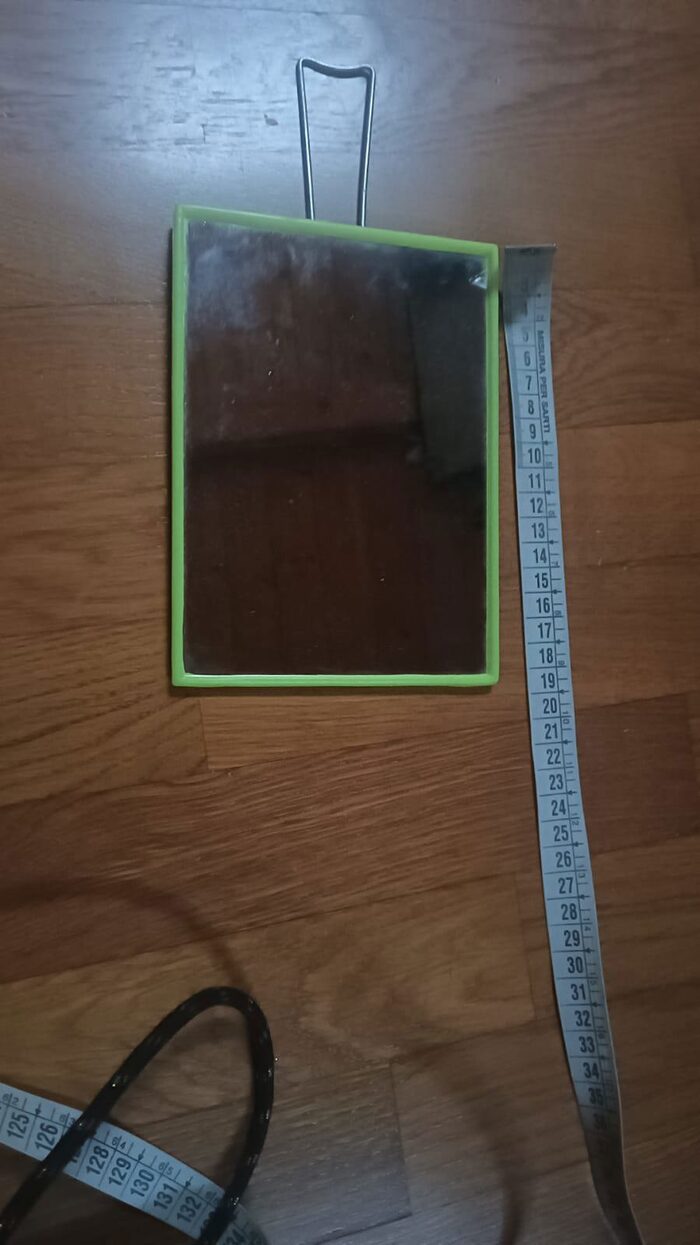 specchio con dietro inplkastica verde .