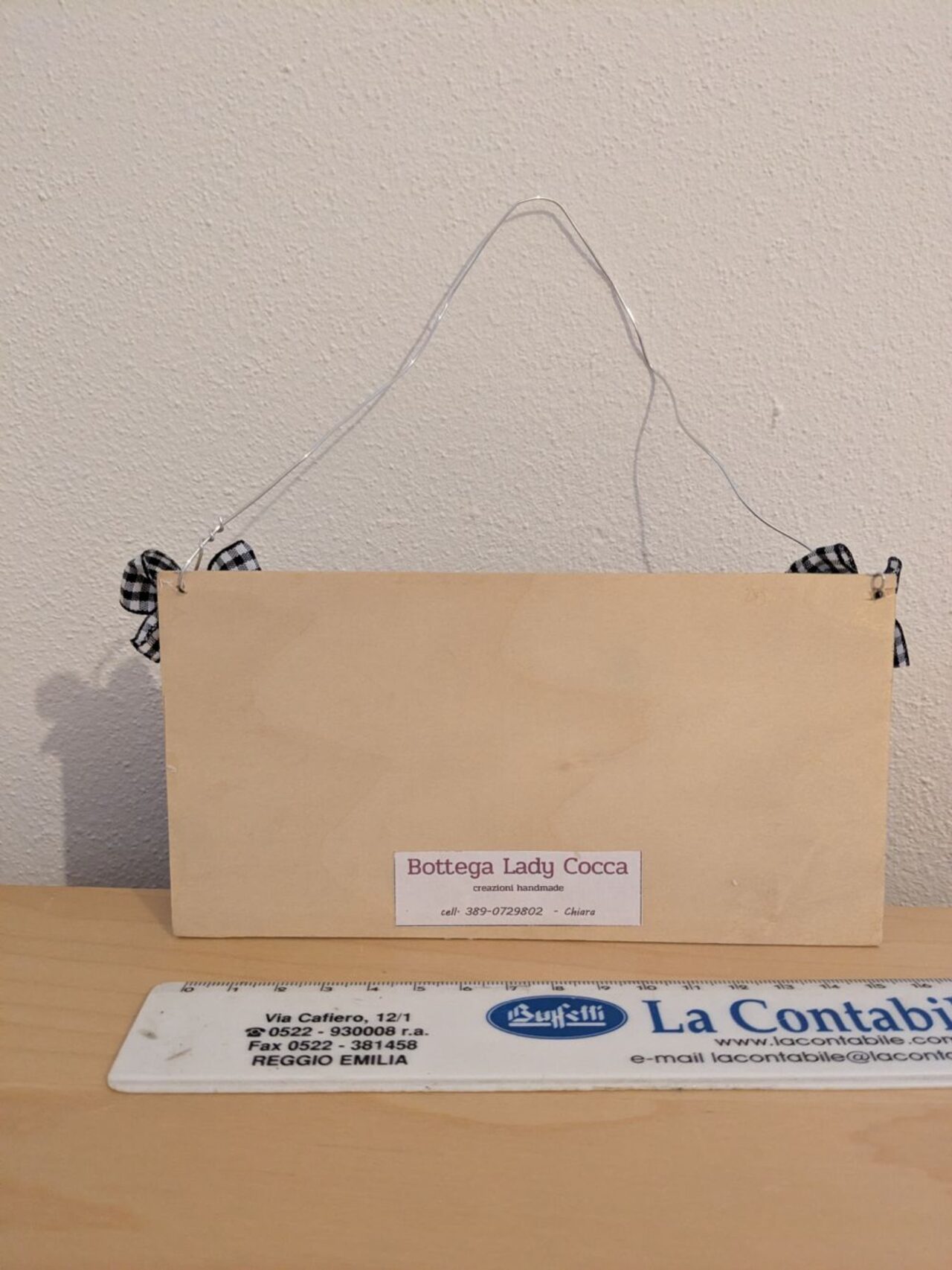 Targhetta da appendere realizzata a mano, in legno leggero. .