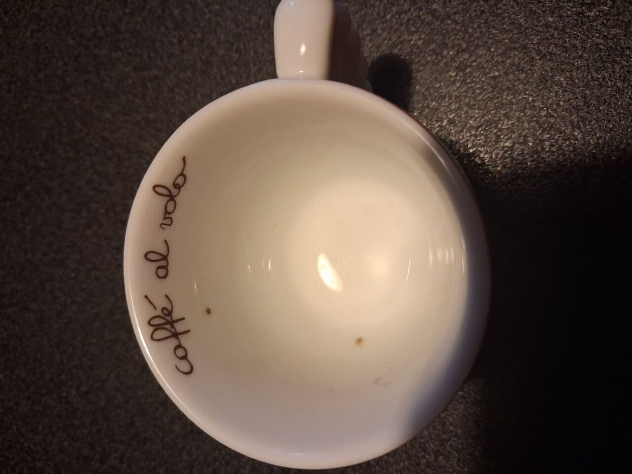 ho rotto una tazzina di questo servizio da caffè, che poi era costituito da due sole tazzine e rispettivi piattini, e mi farebbe piacere rimettere insieme la coppia. Se qualcuna la possiede e magari è rimasta sola soletta mi pensi... .