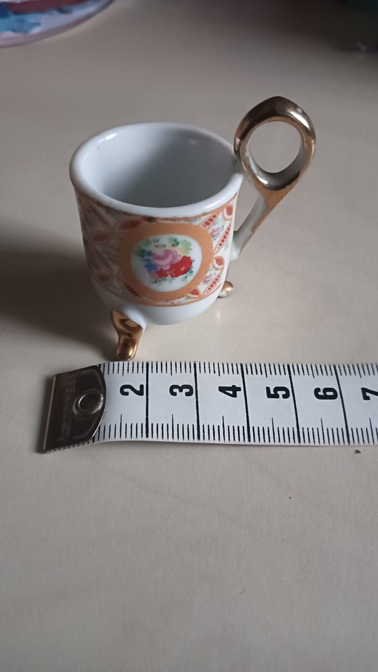 da caffè con le gambette vintage decorata presumibimlente a mano senza piattino e senza evidente firme ne sotto e ne ai lati .