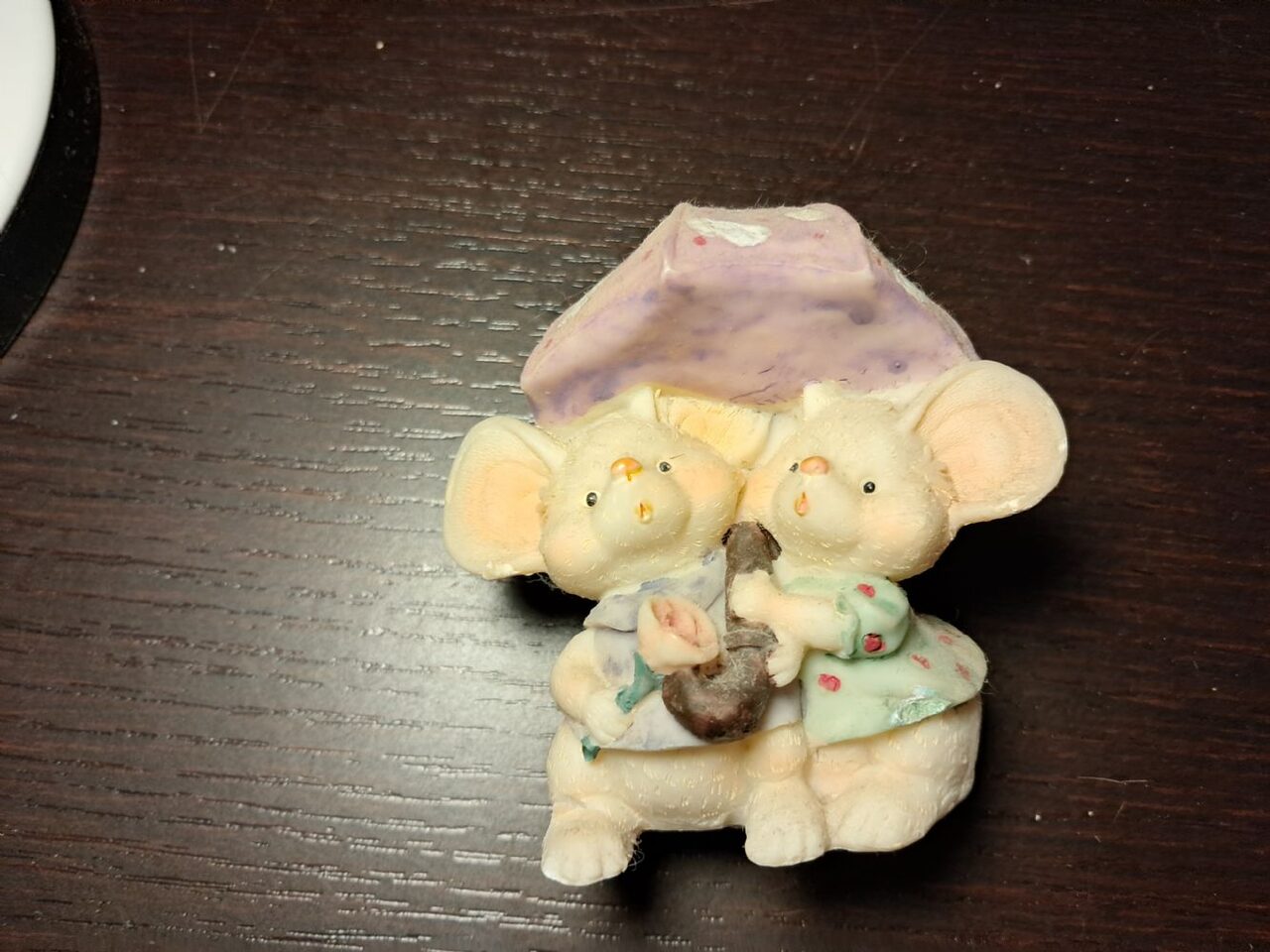 2 topino sotto l'ombrello, presi qui e tenuti esposti. Alti circa 8 cm .