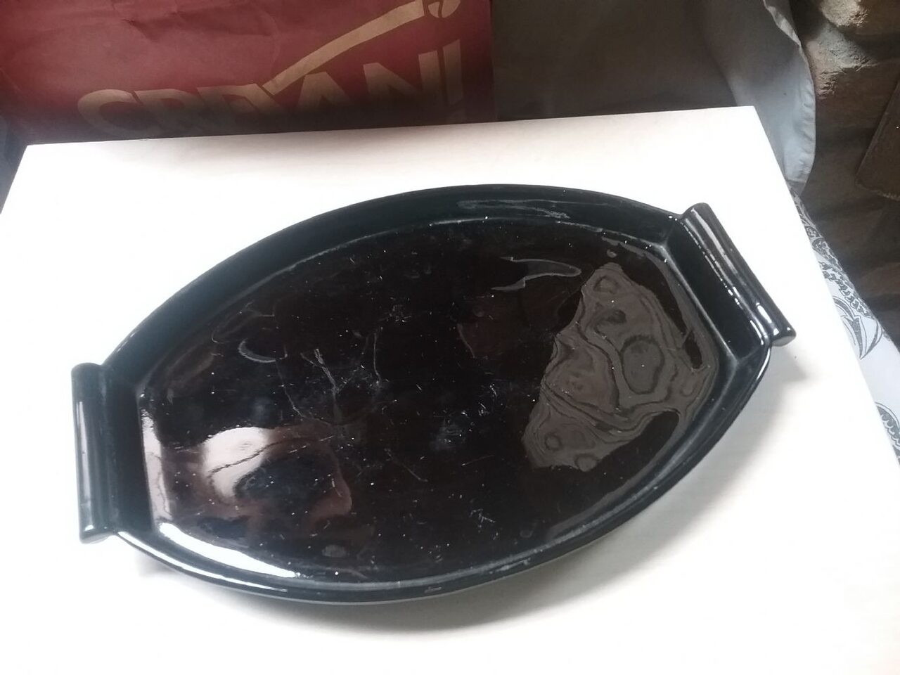 Piccola pirofila bassa, oppure vassoio, dipende a cosa serve. Ceramica spessa. Misure 20x15x2 cm. .