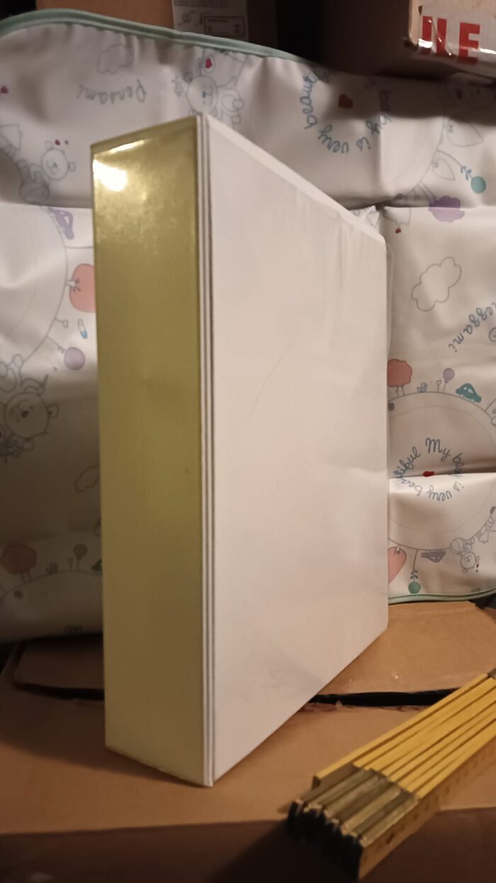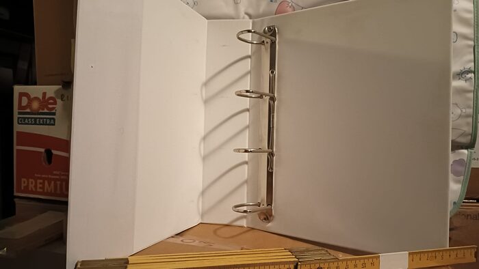 a 4 anelli per fogli aA4 bello grande per archiviare un po di cose,in plastica e metallo ed ha una copertinatrasparente dove ci si può infilare il folgio per l acatalogazione in un punto è staccato ma non ne pregiudica l utilizzo.Misure 31*27*7.Lo consegno in modo che dentro ci si possa mettere altro per la spedizione .