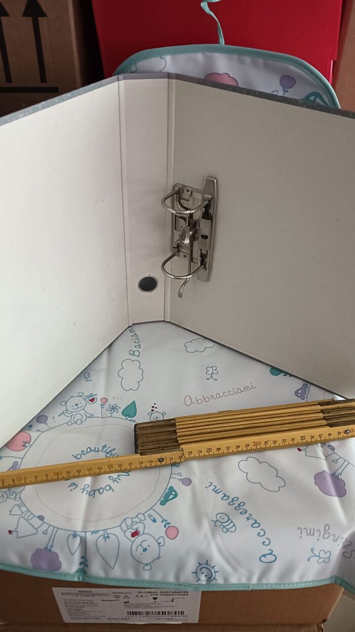raccoglitore per archiviazione fogli A4 in cartone rigido e metallo gli anelli ..Misure larghezza 28 altezza 31 profondità quasi5 .