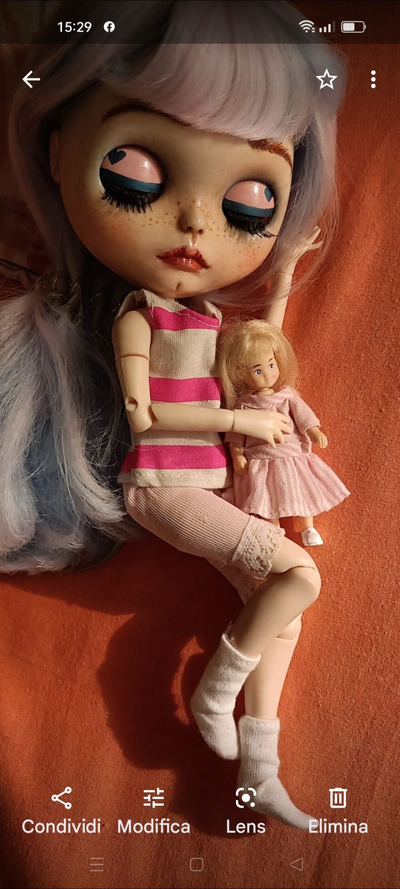 Avevo postato un annuncio: "cerco abiti per Barbie", ma in realtà cerco abiti e accessori per lei: la mia prima blythe.La prima foto é come era quando l''ho adottata... Le altre dopo averla customizzata (lo so é un lavoro impreciso, ma é la prima e la terrò così)... Adoro queste bambole e mi é appena arrivata la seconda, che devo modificare.Cerco quindi vestiti e accessori.Cerco anche bambole blythe (anche in cattivo stato) da adottare :) .