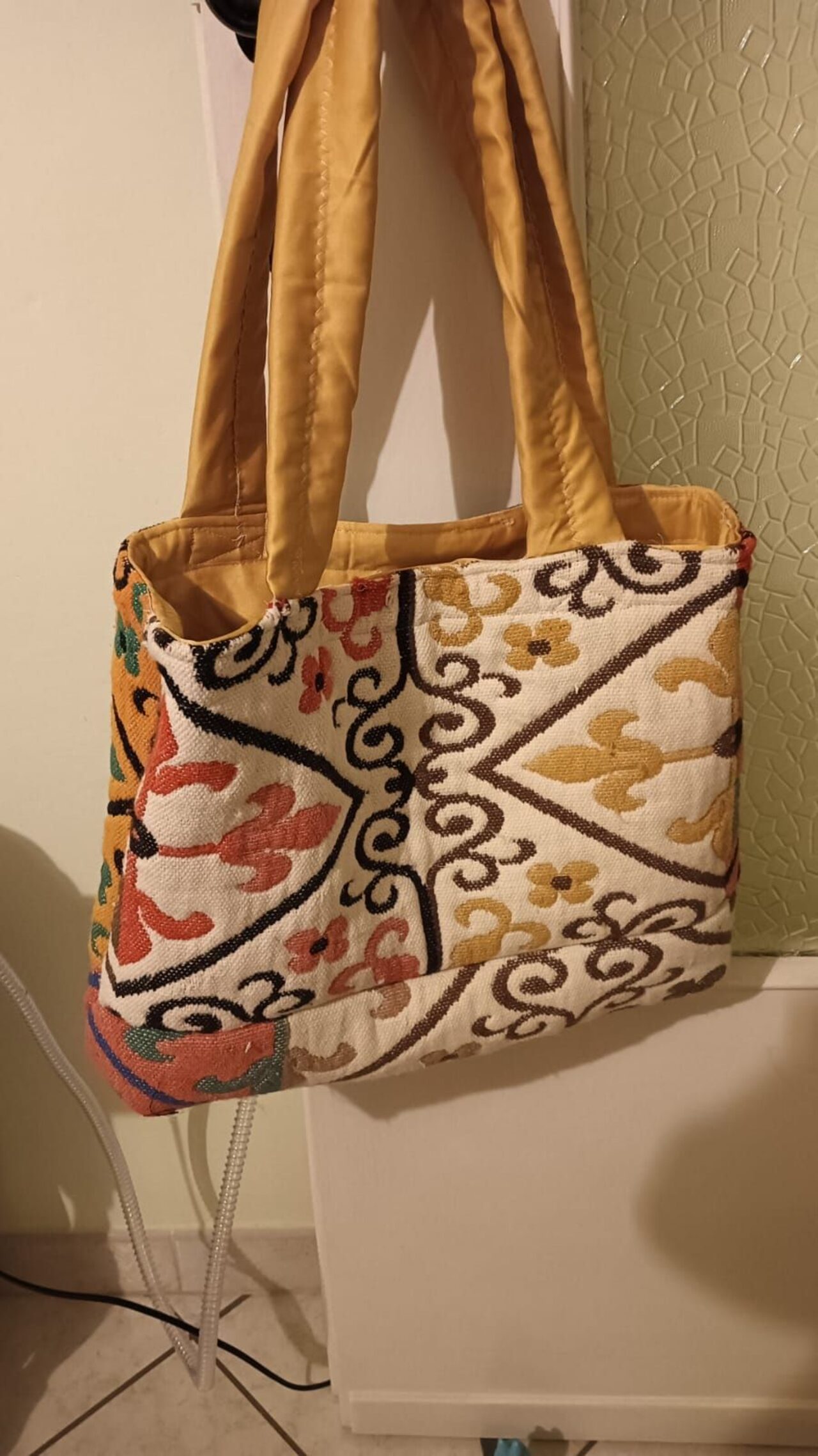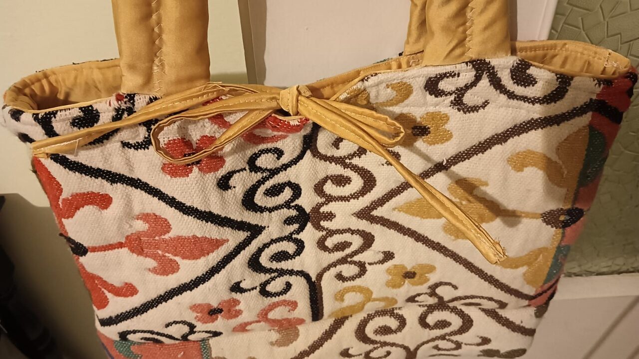 come si può trasformare una striscia di stoffa recuperato probabilmente da un altra riparazione e chissà quale ? una spendida borsa invernale .