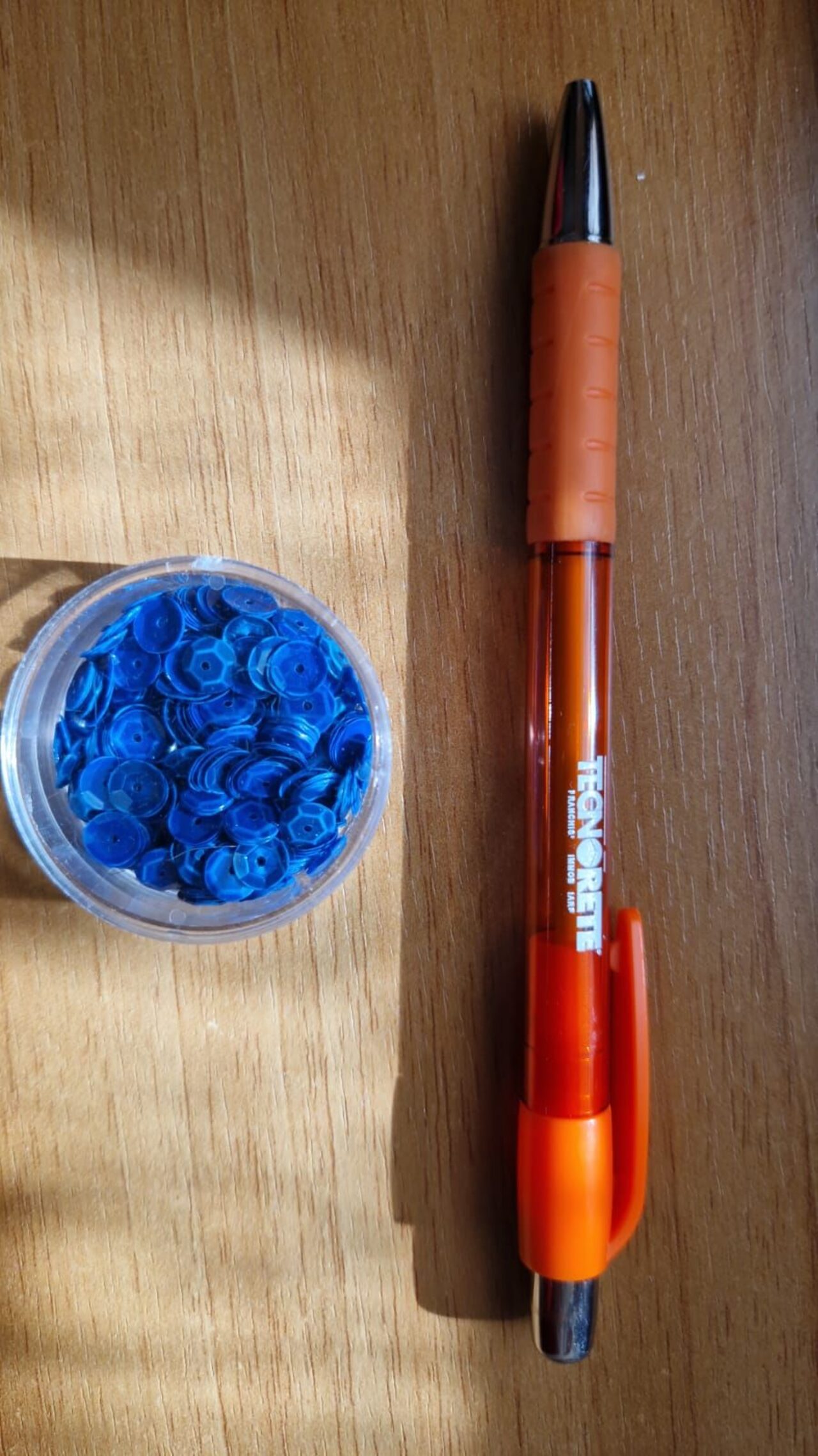 scatolina con paillettes blu (non le ho contate) biro per dimensioni. Esagonali di 3 mm per lato. mai utilizzate .