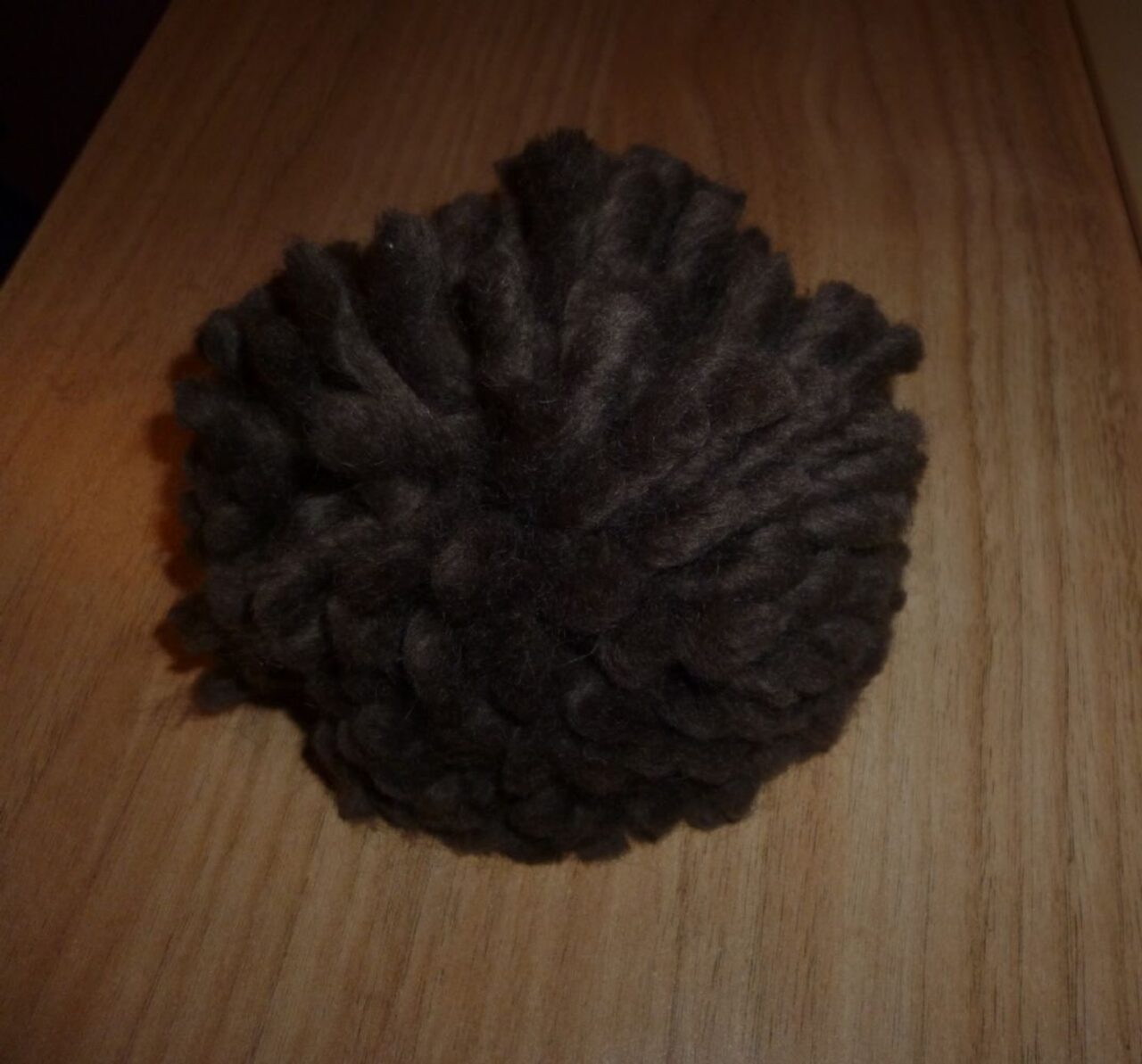 Pon pon in lana grossa marrone/verdone. Diametro 11 cm circa .