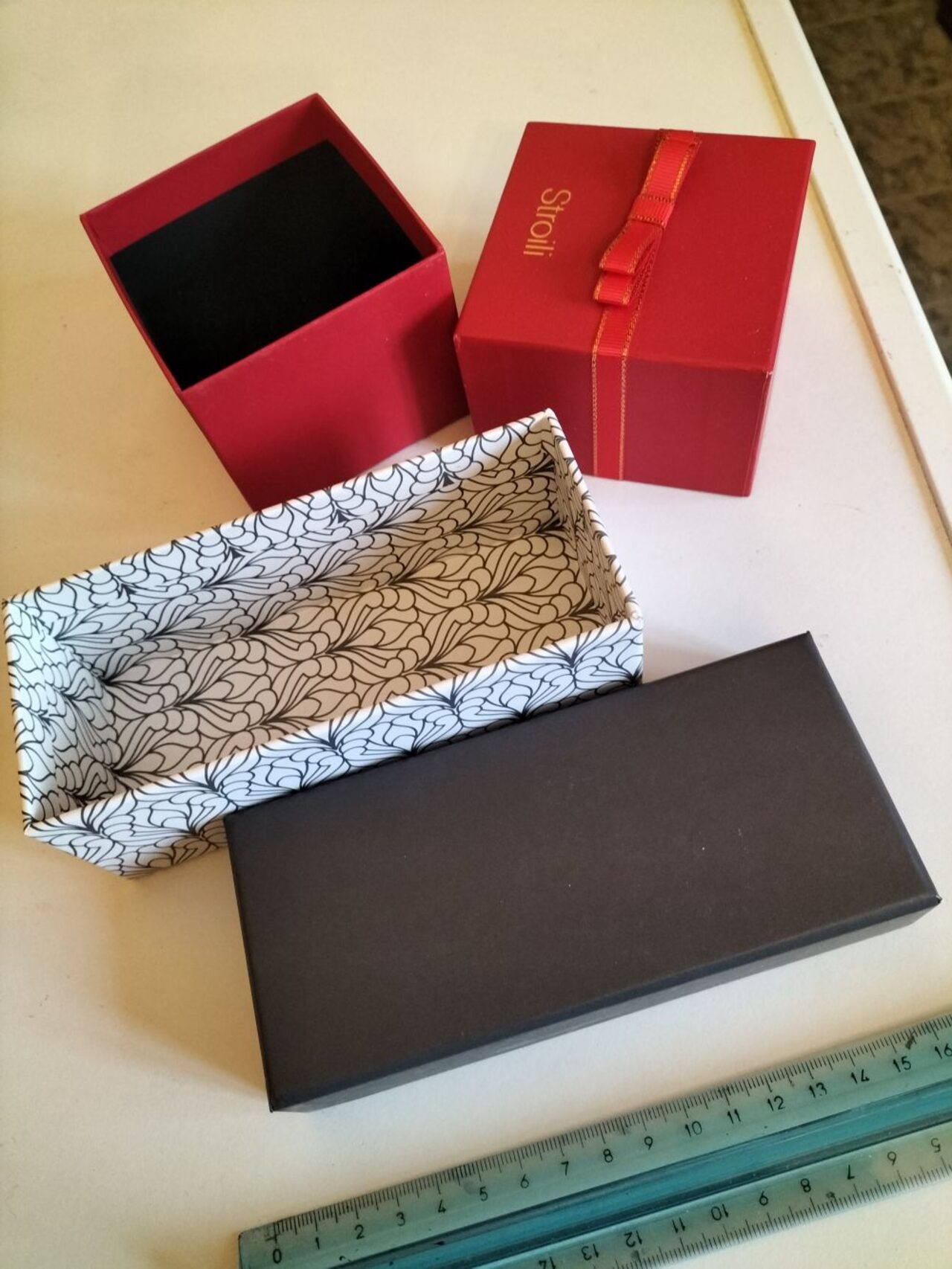 La rossa usata poco, l''altra nuova presa x un regalo mai fatto la terza conteneva cioccolaini. 15x15x3 .