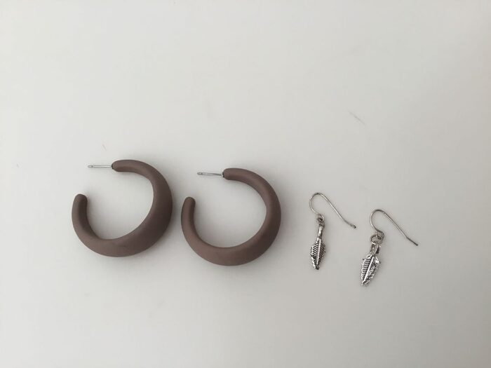 2 paia di orecchini, un paio a foglia con monachella, quelli tortora senza farfallina.1 credito x entrambi .
