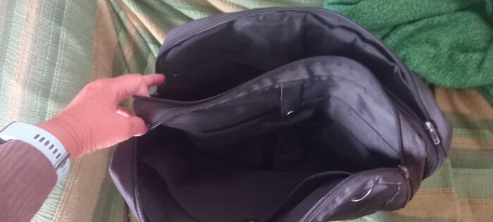 non ha lo zpazio porta pc imbottitocm 40 x 30 x 10 ok bagaglio sottosedilespallacci a scomparsaneroimpermeabile .