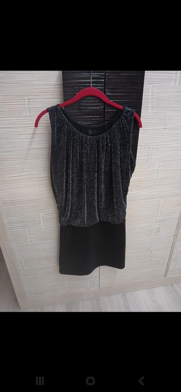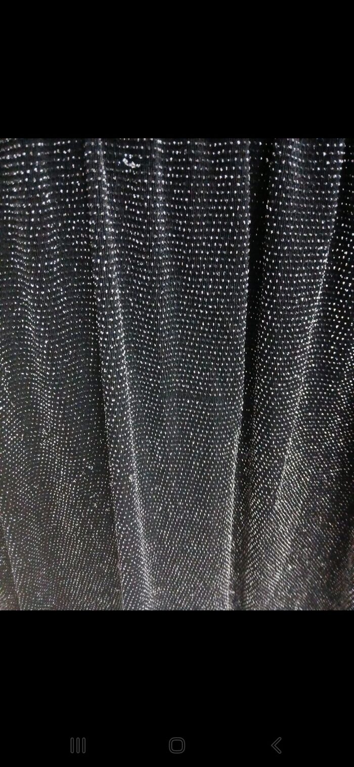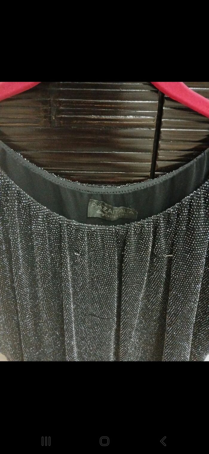 Preso qui. TG. L ma per me è stretto nella parte attillata sui fianchi. Marca piazza Italia. Ha qualche filo metallico tirato come da foto. Metto a 1 credito. Composizione 77% nylon, 18% metallica e 5% elastan. .