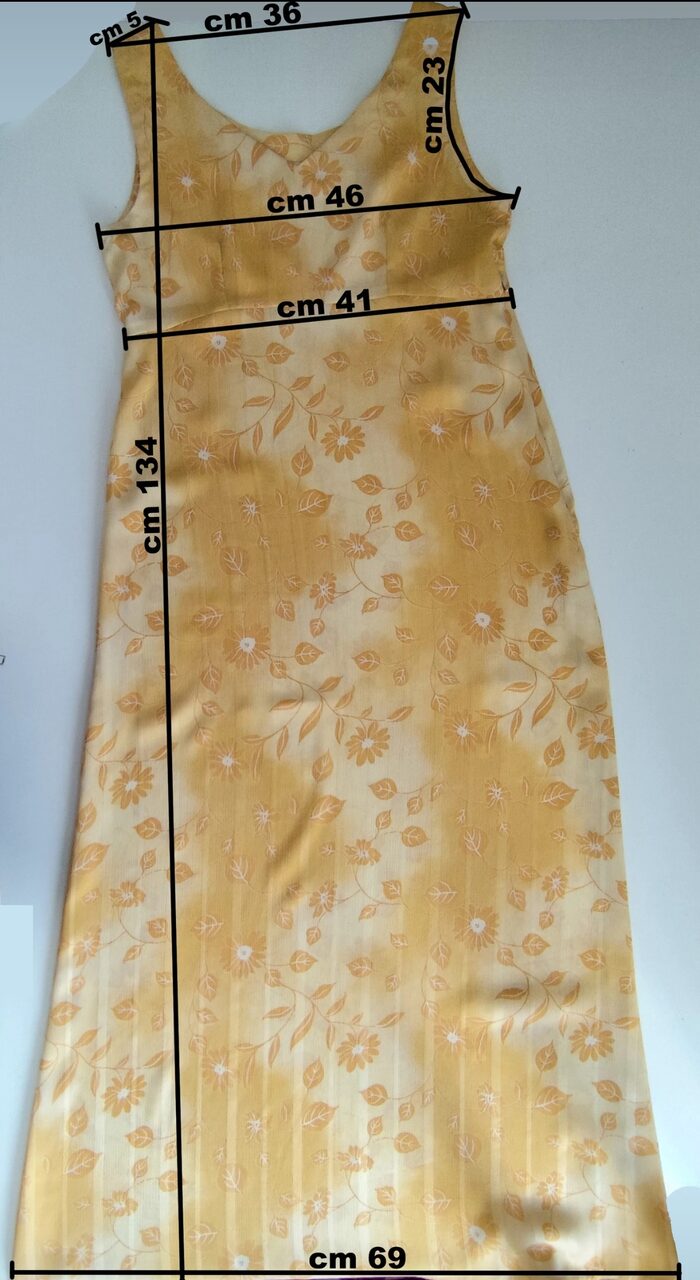 Abito lungo giallo con fiori sartoriale | Cose(in)utili.it