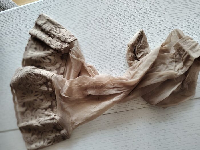 Autoreggenti solo provateLunghezza gamba 57cm sotto il fascione elasticoCredo tg. IVColore carne20den .