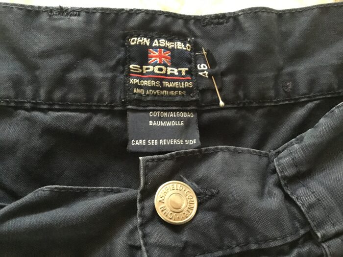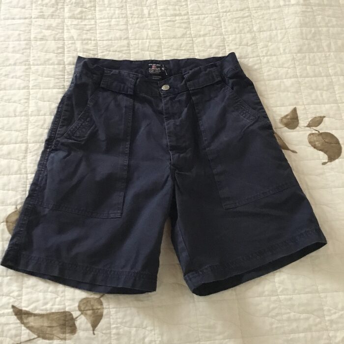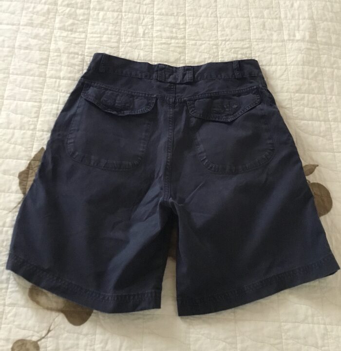 Bermuda blu scuro in cotone, marca John Ashfield Sport. Indicata tg 46 ma secondo me vestono meno, comunque indico misure così vi regolate: larghezza vita 37,5; lunghezza totale 48, dal cavallo a fondo 18; larghezza gamba al fondo 29. Doppie tasche laterali di cui quelle più interne chiuse con pezzetto di velcro centrale. Tasche dietro con pattina chiuse anch’esse da velcro. .