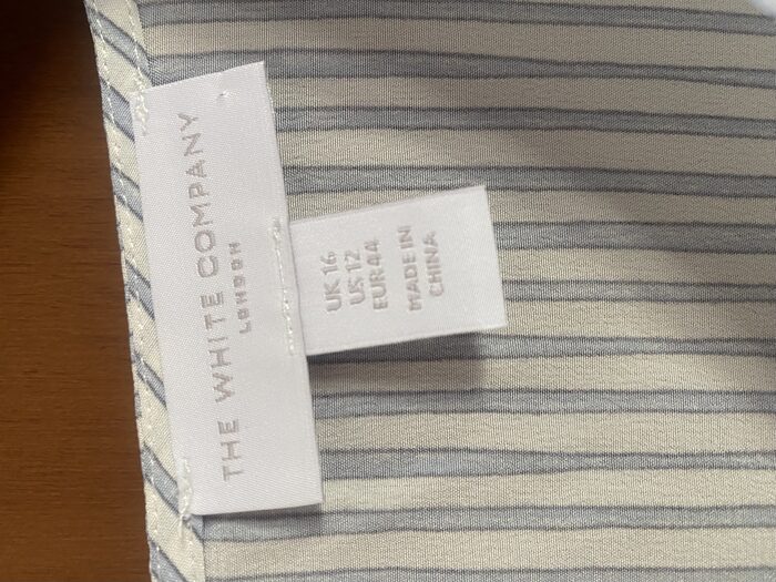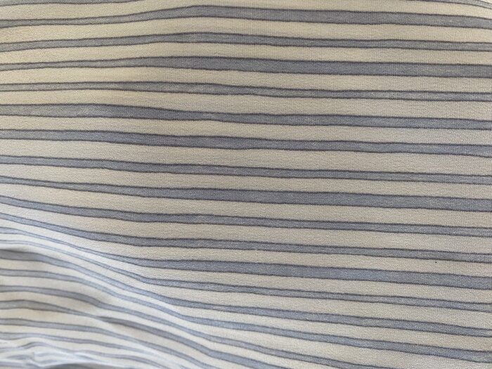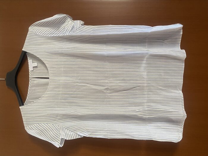 Bella camicetta con allacciatura di un bottoncino sul retro, decoro a righe azzurrine, .