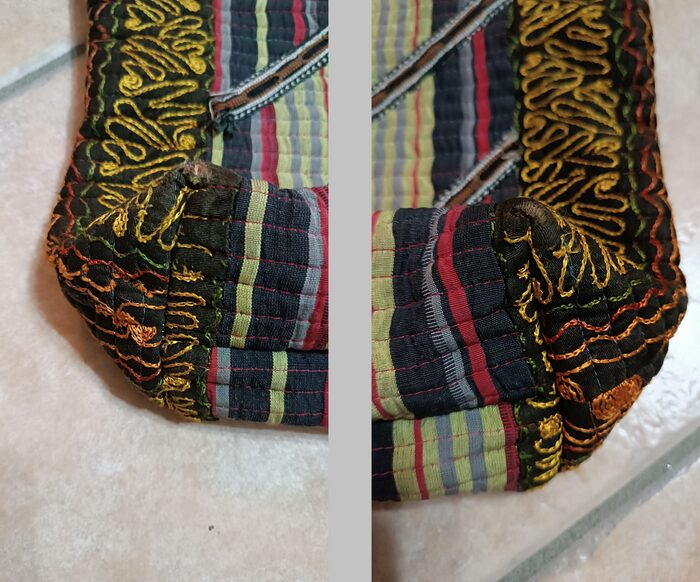 Angoli alla base un pò consumati, qno di più qno di meno, ma si camuffano nel tessuto e si mimetizzano, vedi foto. .