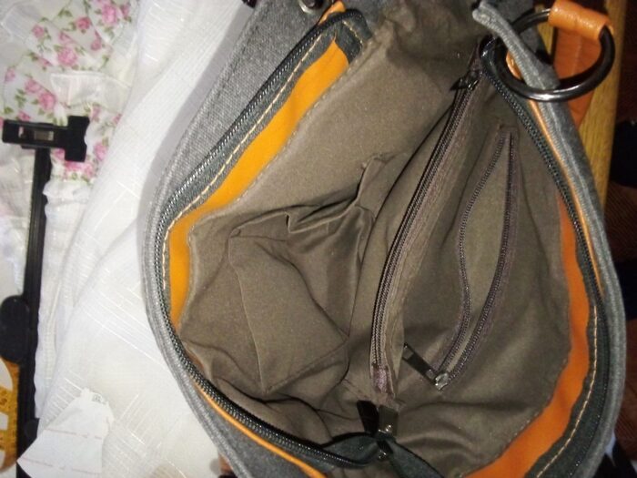 Borsa a spalla in tessuto, con due manici e tracolla regolabile e staccabile. Interno con una tasca grande con cerniera e due vani. Due taschine esterne davanti e una dietro. Spedizione diretta con rimborso su Postepay. .