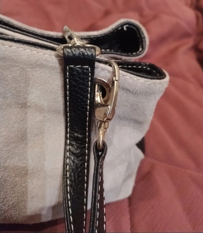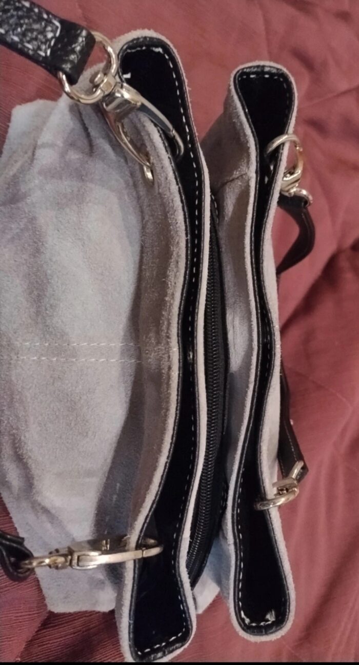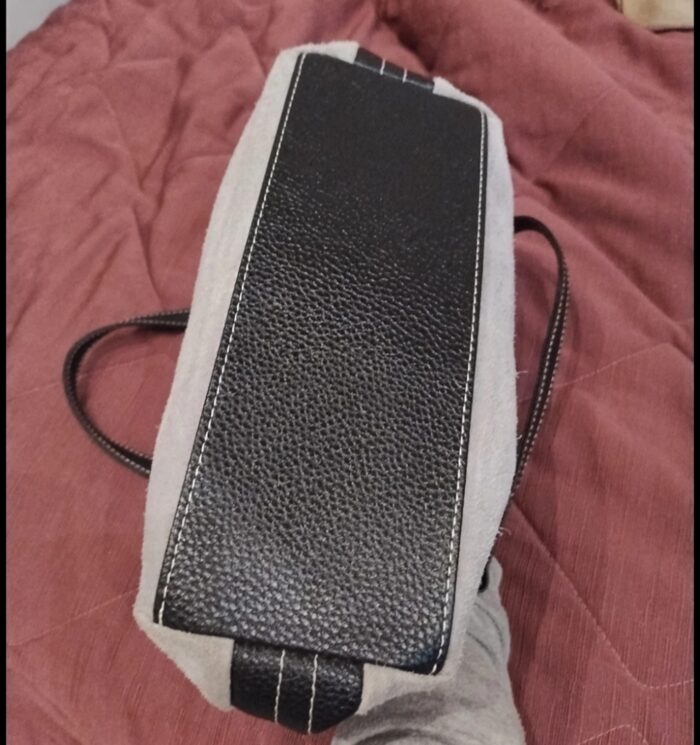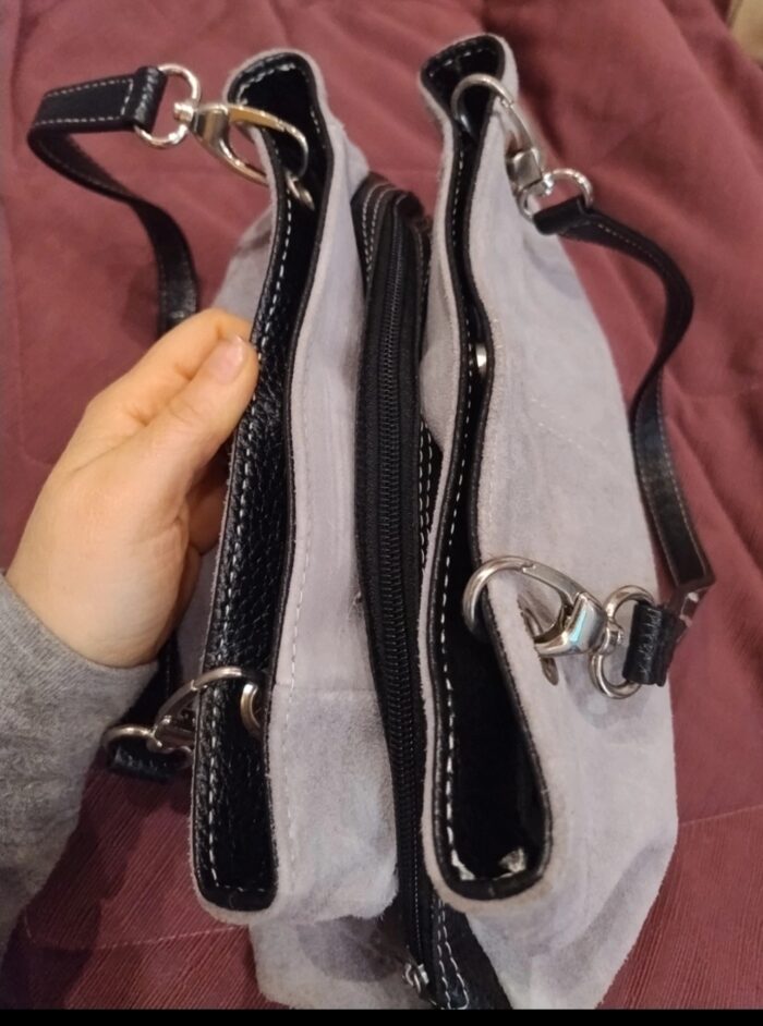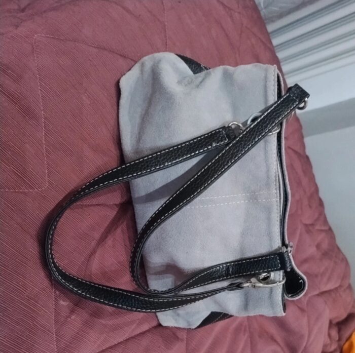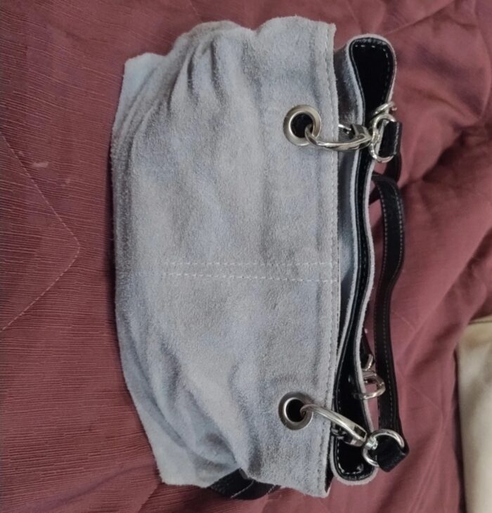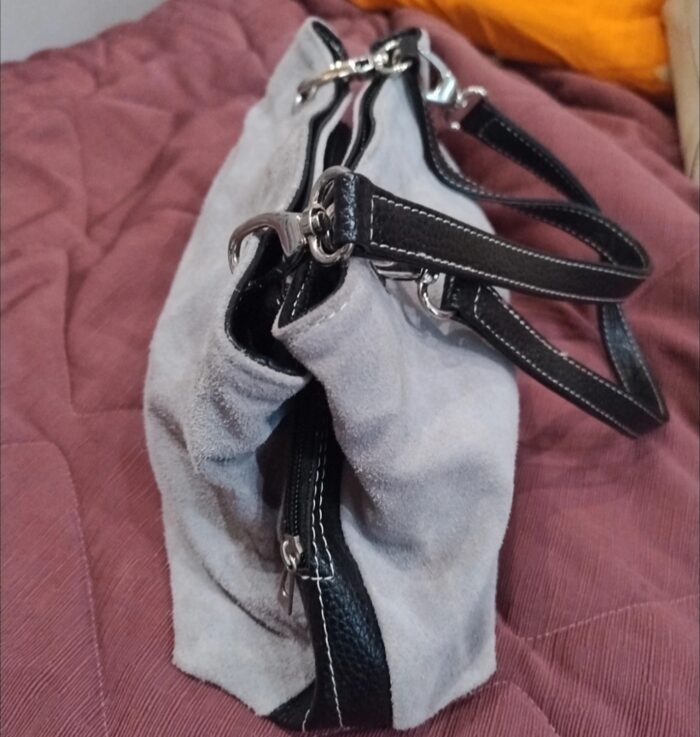 Manici e bordi neri in ecopelle il reso ecopelle scamosciata grigia