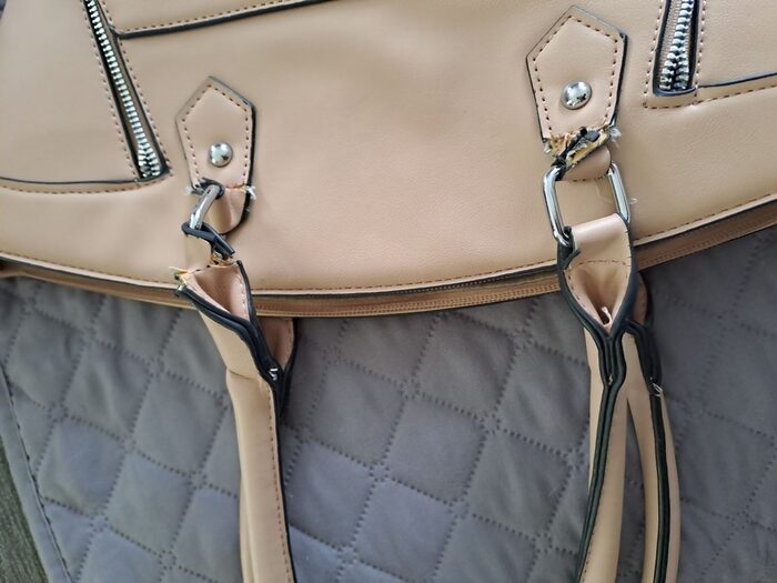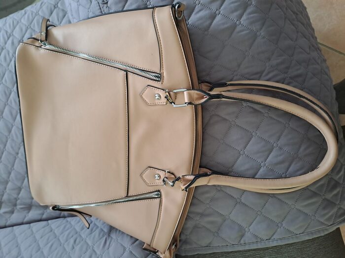 Borsa in similpelle, rosa tenue , dentro perfetta , maniglie da riparare ma ancora utilizzabili, cm 30 x 30 , base rigida .
