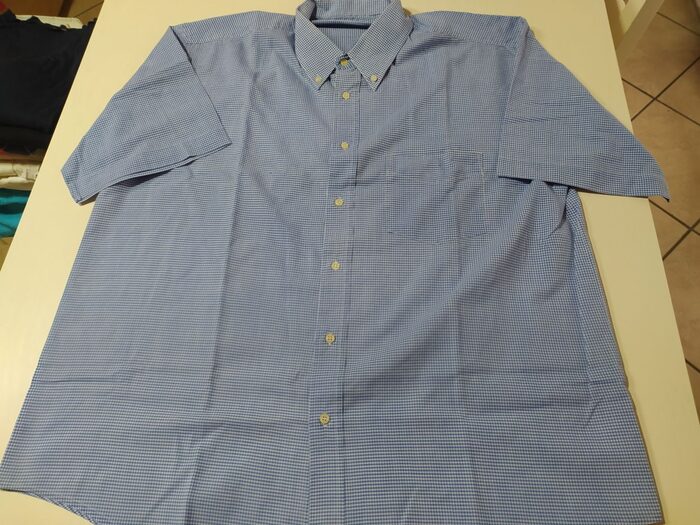 Camicia a quadretti 65% poliestere, 35% cotone, spalle cm 51, ascelle cm 64, lunghezza cm 79. .