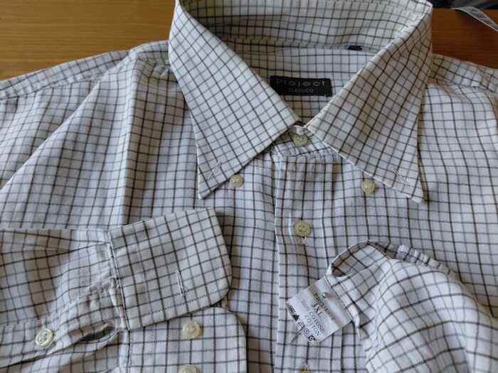 Camicia uomo 3XL 100%cotone, base color panna a quadretti. 100% cotone. Misure ed etichetta in foto. Consegna a mano o collettiva Varese. .