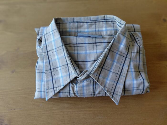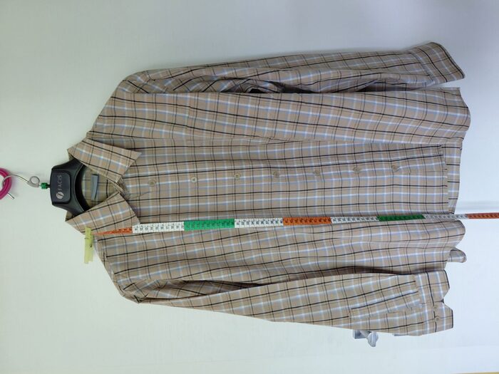 Camicia uomo 44 marrone chiaro, motivo a quadri. Misure ed etichetta in foto. Consegna a mano o collettiva Varese. .