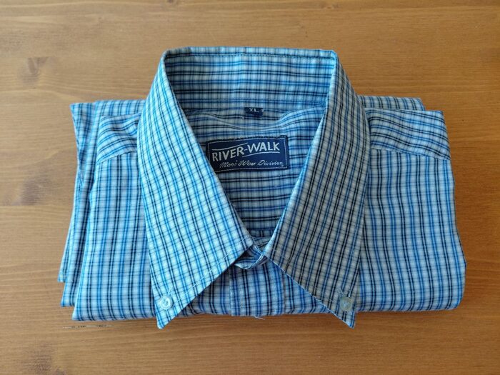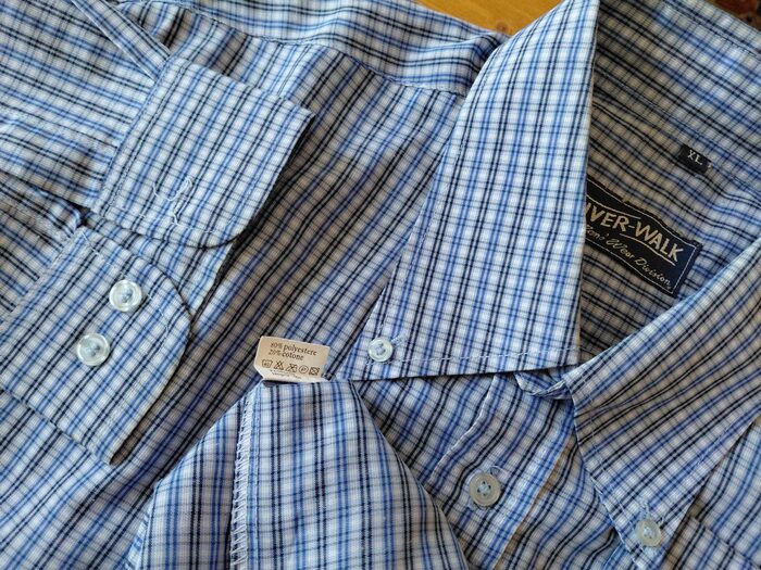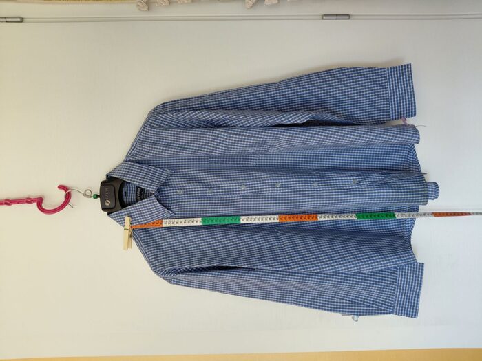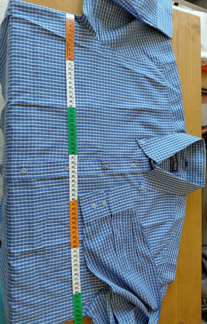 Camicia uomo XL azzurra quadri piccoli blu. Misure ed etichetta in foto, consegna a nano o collettiva Varese. .