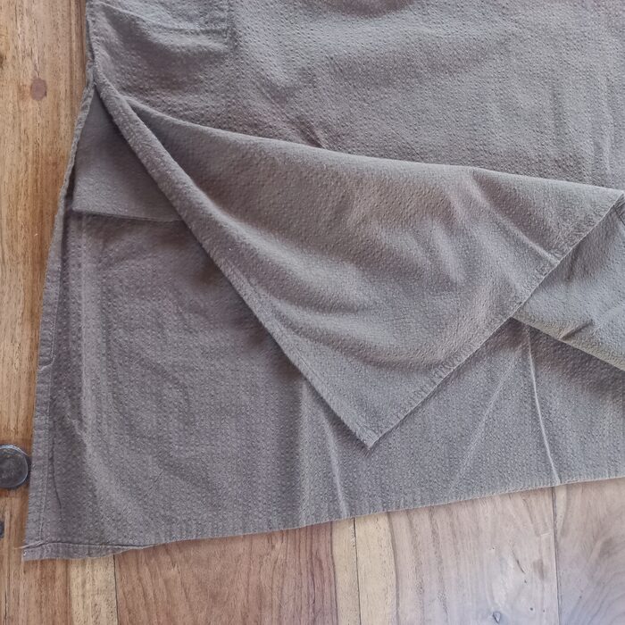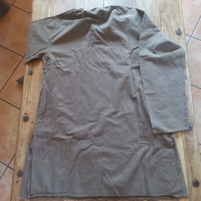 Ampia camicia dal taglio particolare, con tasche e spacchi laterali.